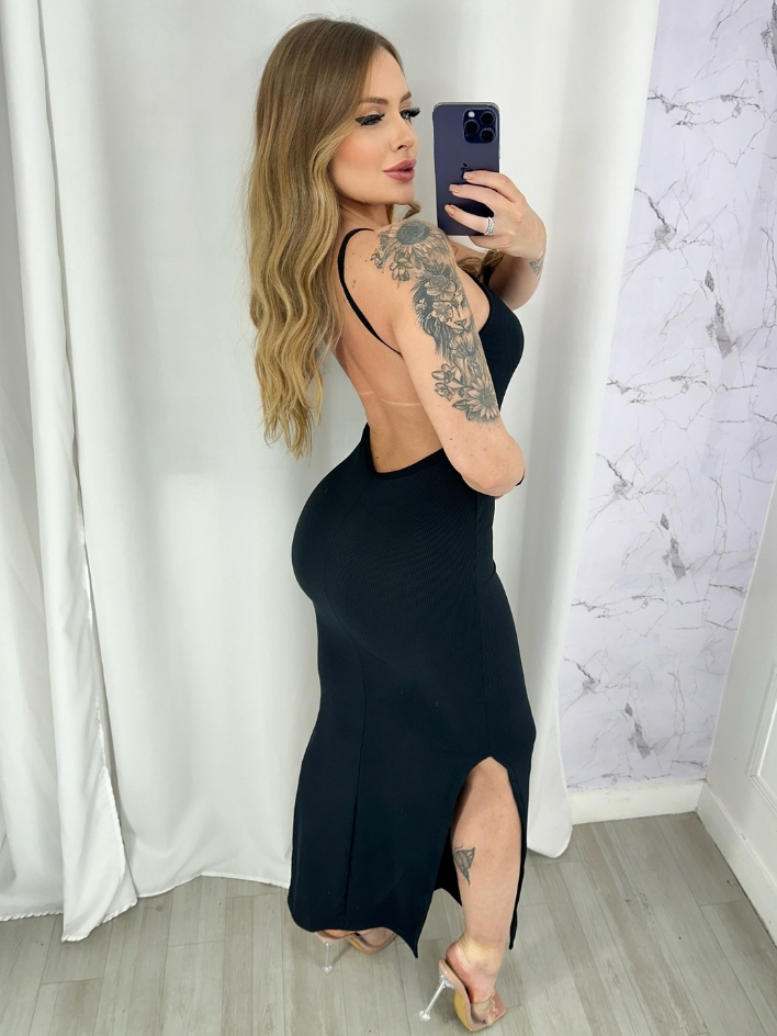 Vestido Longo Feminino De Alçinha Com Fenda Costas Nuas Tendência