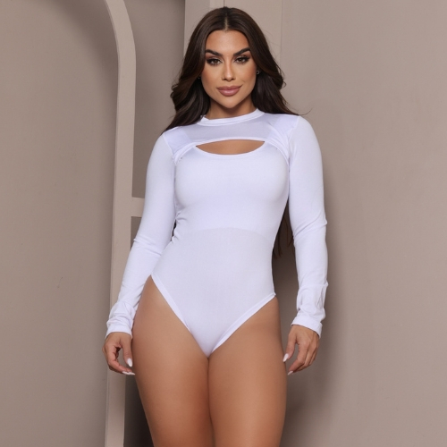 Body Feminino Gola Alta Com Recorte Manga Longa Tendência Moda Blogueira