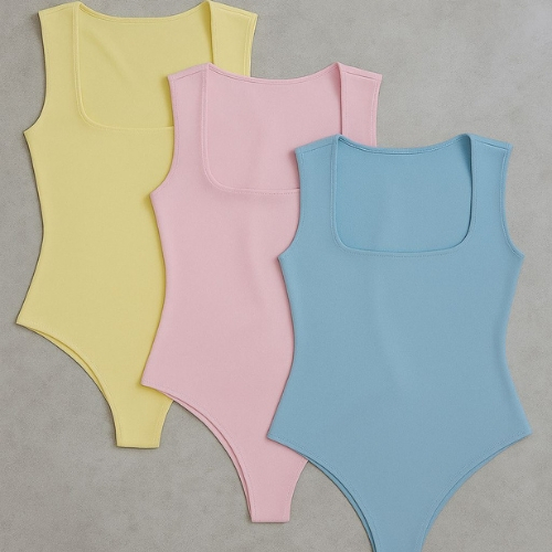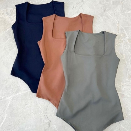 Kit Com 3 Body Collant Feminino Básico Com Decote Quadrado Têndencia Blogueira