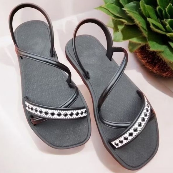Sandália Feminina Festeja Rasteirinha Papete Com Brilho Strass