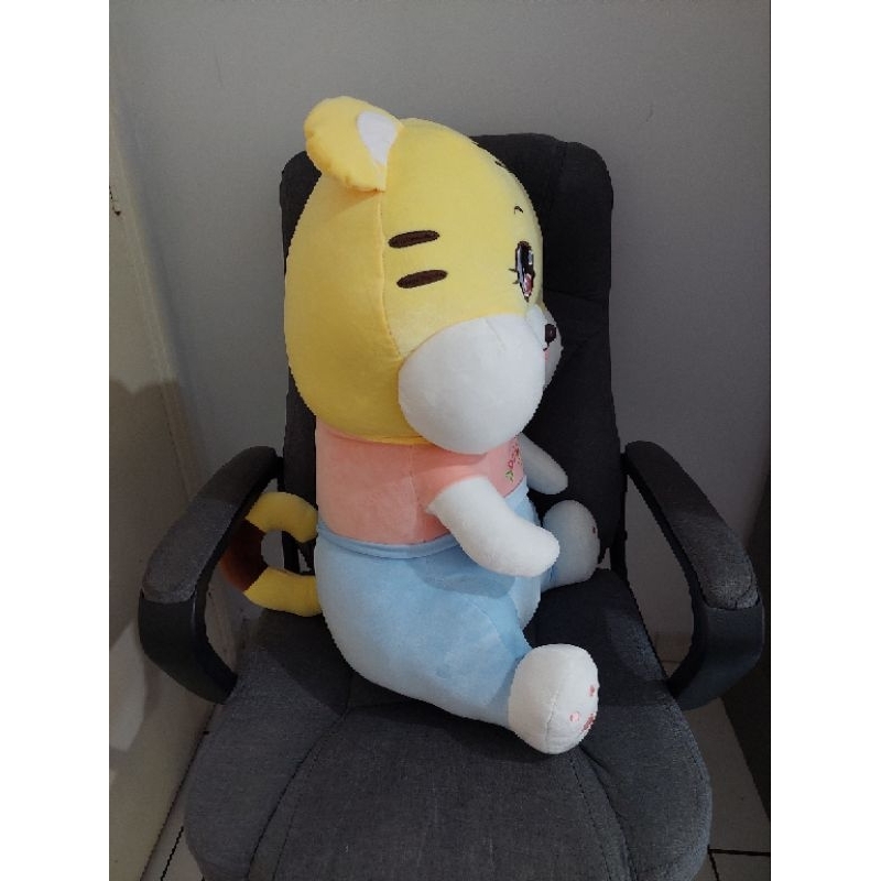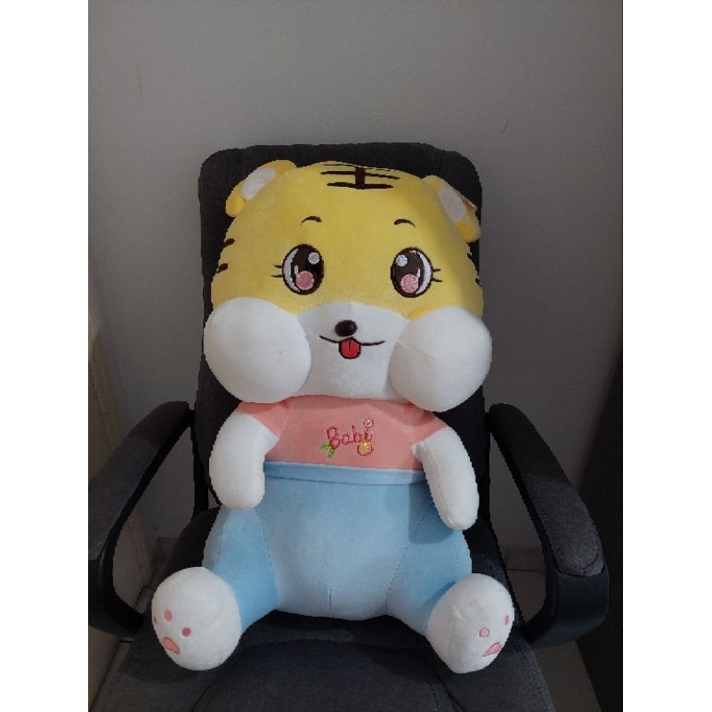 Tigre de pelúcia branco e amarelo, 57cm de altura