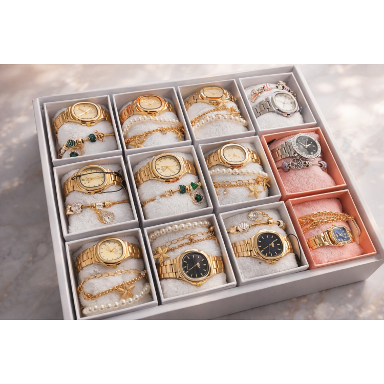 Relógio Feminino Luxo Dourado/Prata Elegante / Pulseira Fina Aço Inoxidável Presente Delicado