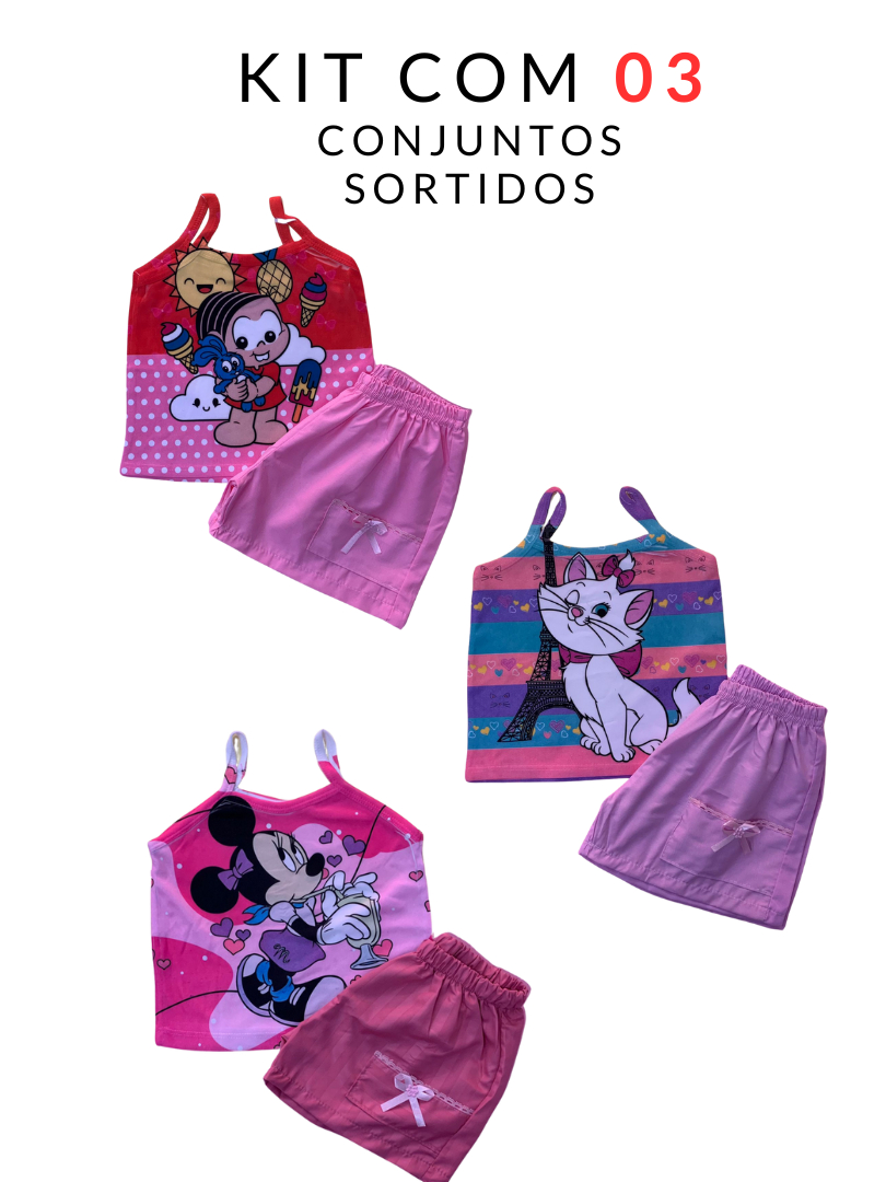 Kit 03 (três) Conjunto Infantil Feminino (1 a 3 anos) Roupas de Menina