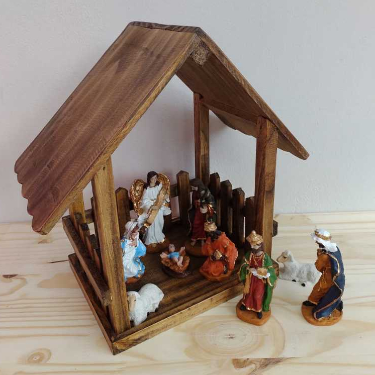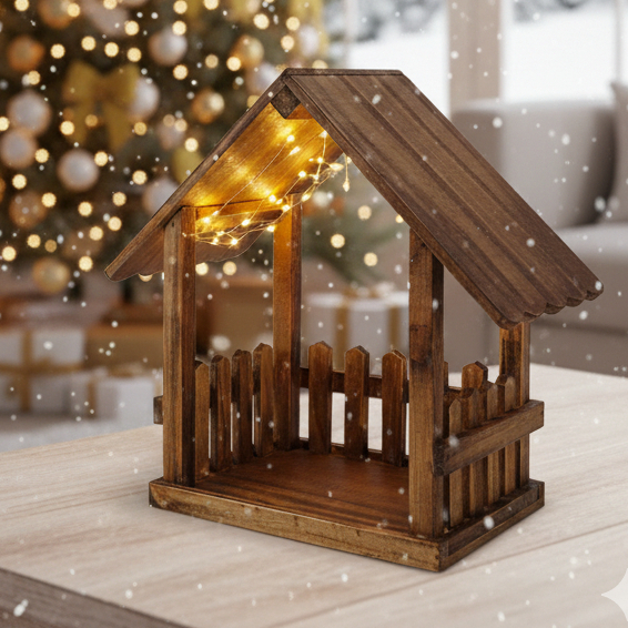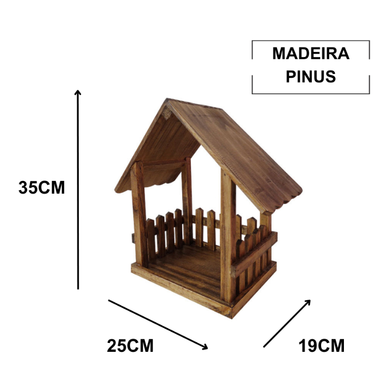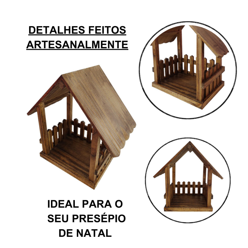 Casinha de Madeira 35cm para Presépio de Natal Manjedoura Pequena Decorativa Rústica Pinus