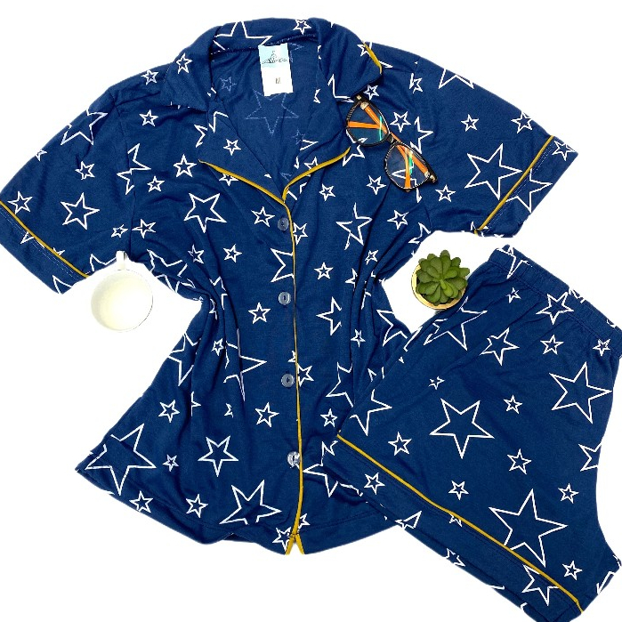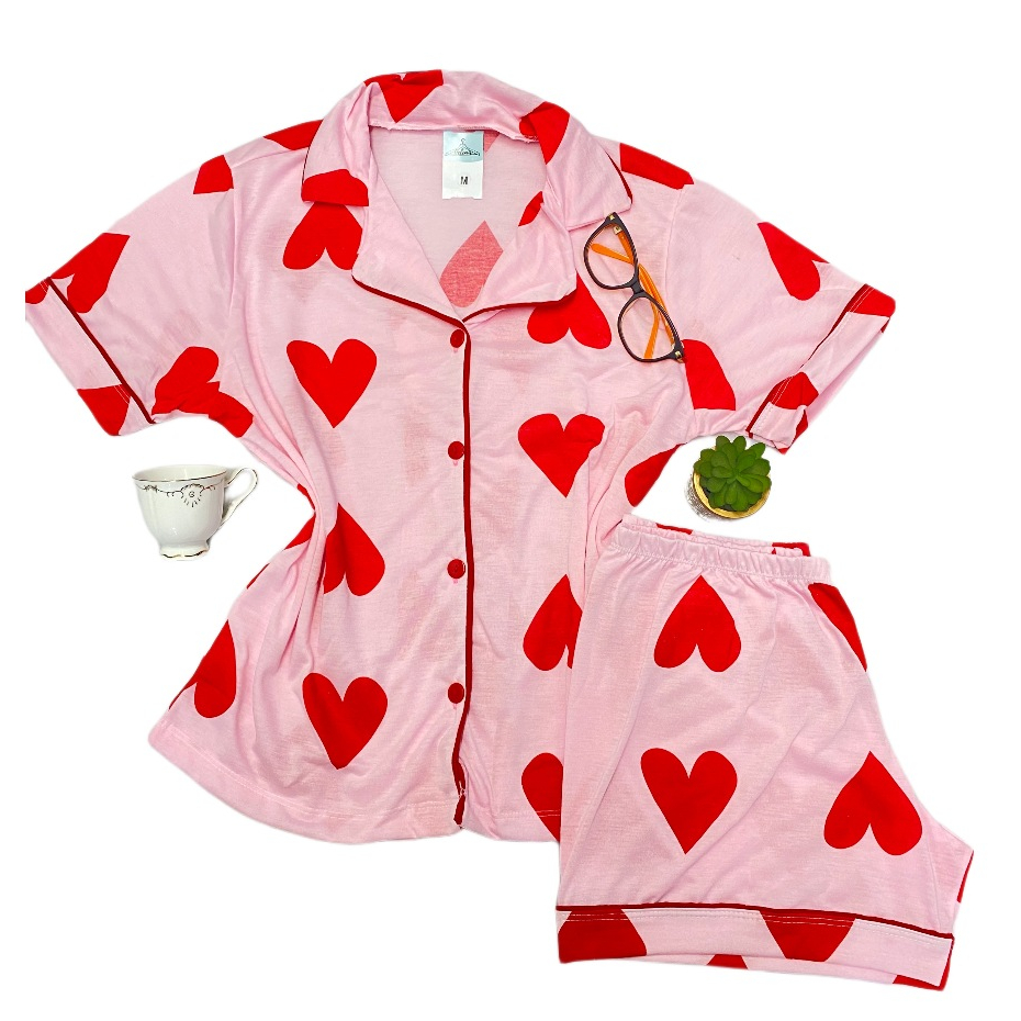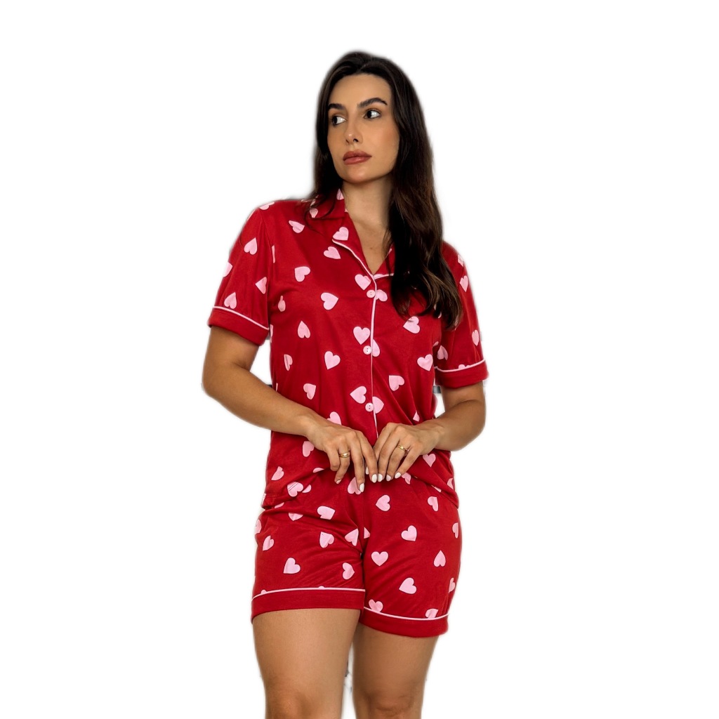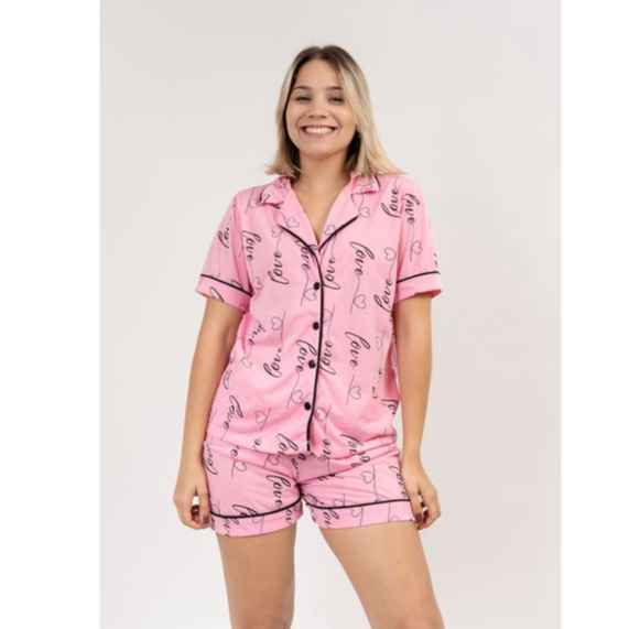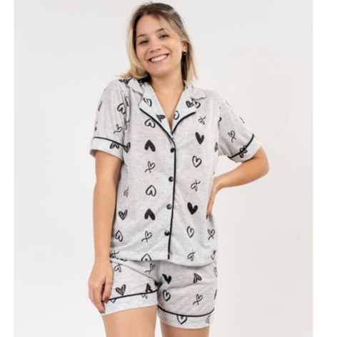 Pijama short doll americano blogueirinha estampas botão amamentação gestante malha