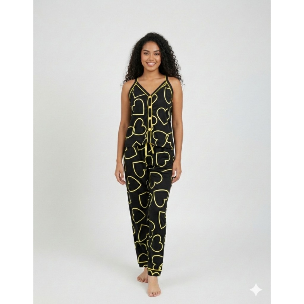 Kit Pijama Feminino 3 Peças Americano Camiseta Alça Botões + Calça + Short Frio/calor Amamentação