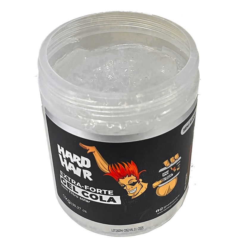 Gel cola Incolor Hard Hair 1kg Fixação extra forte para cabelo