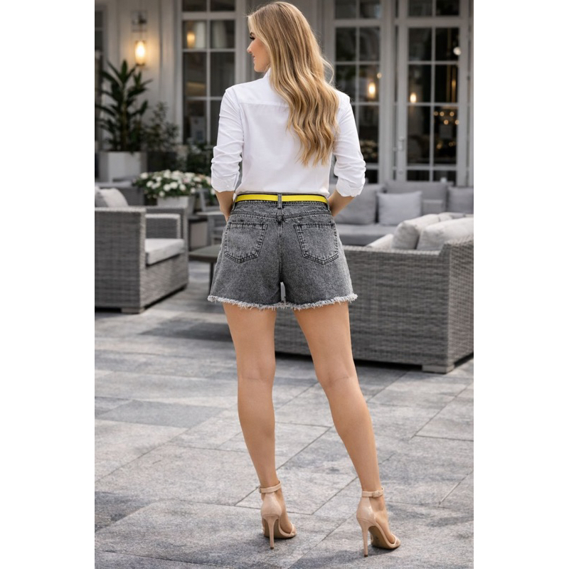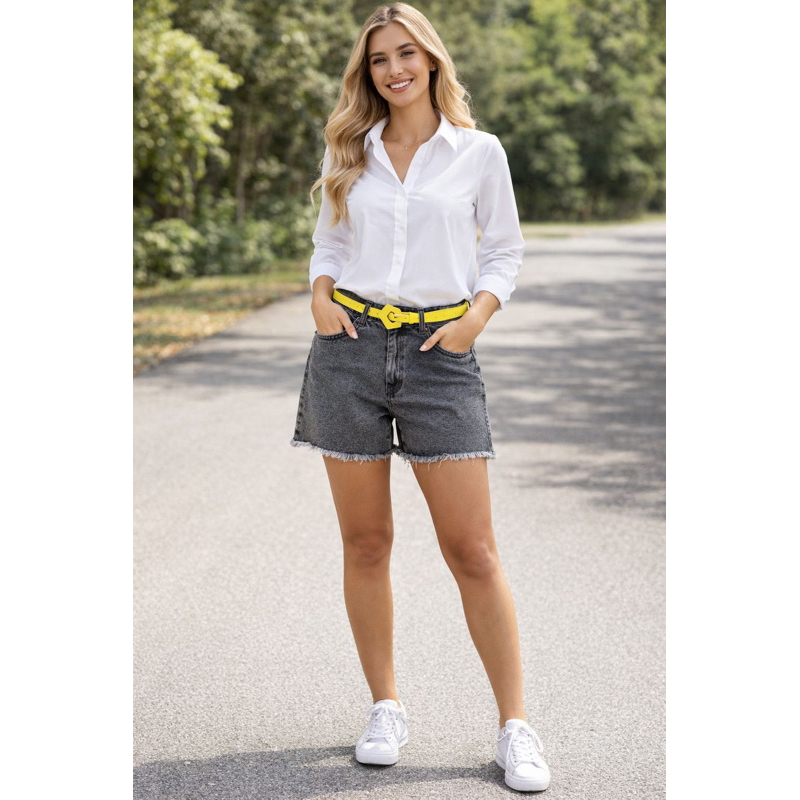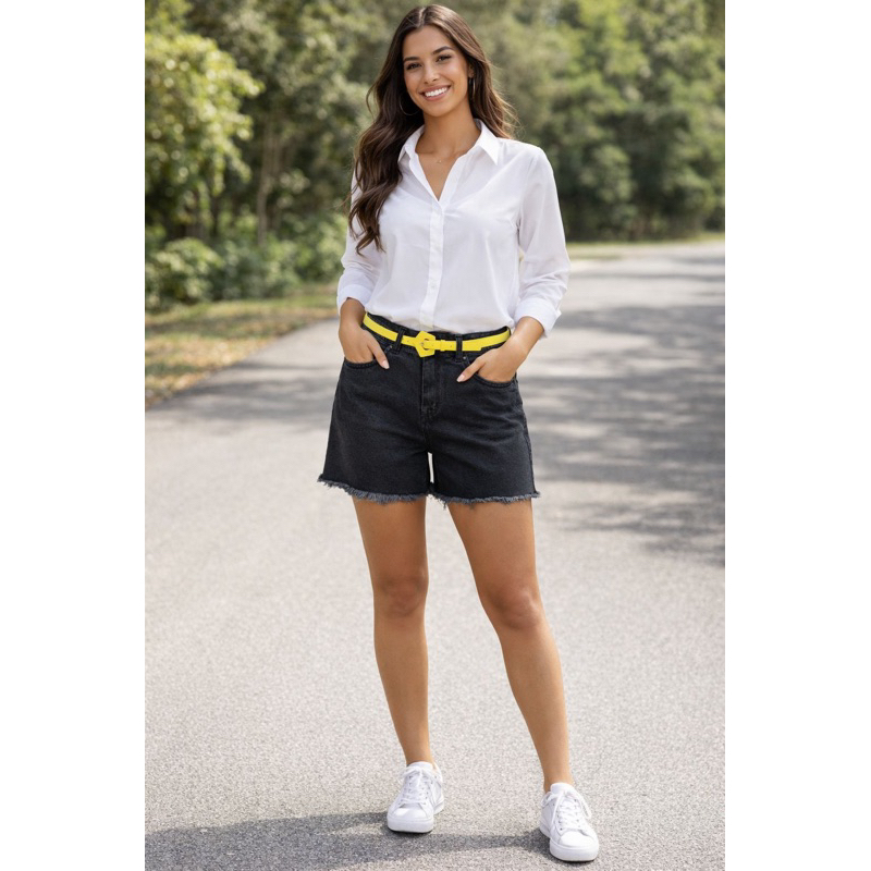 Short Jeans Feminino Meia Coxa Cintura Alta com Lycra