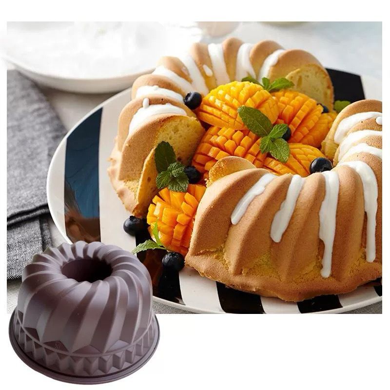 Forma de Bolo de Silicone 25cm Espiral Antiaderente, Furo no Meio e Assamento Uniforme Cozinha