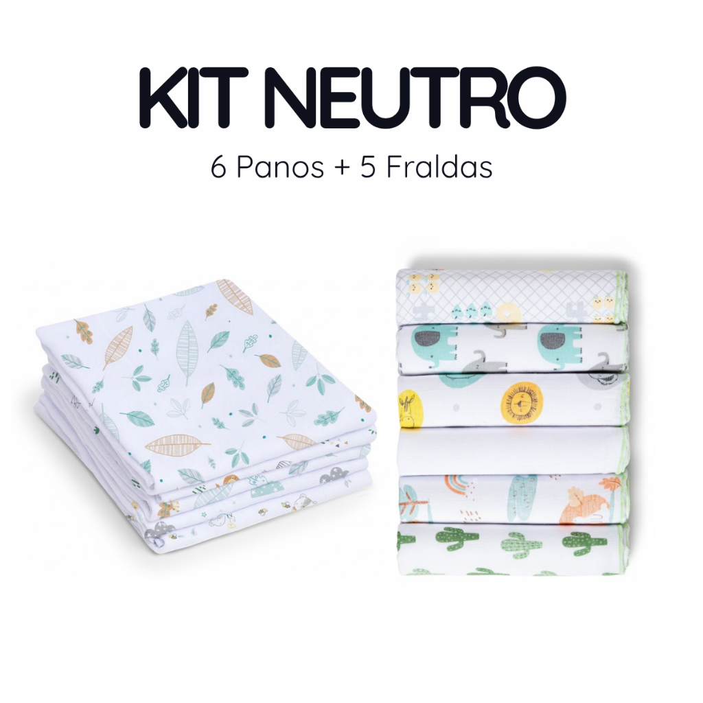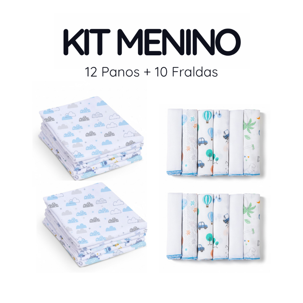 Kit 22 Peças - Panos de Boca + Fraldas de Pano Bebê - 100% Algodão, Babador, Pano de Ombro