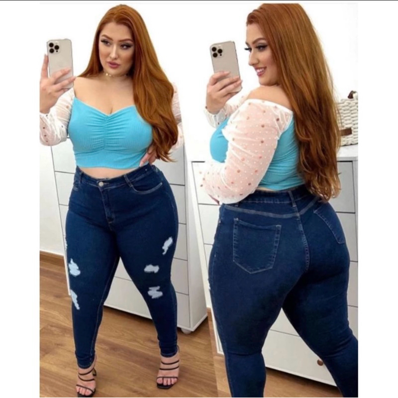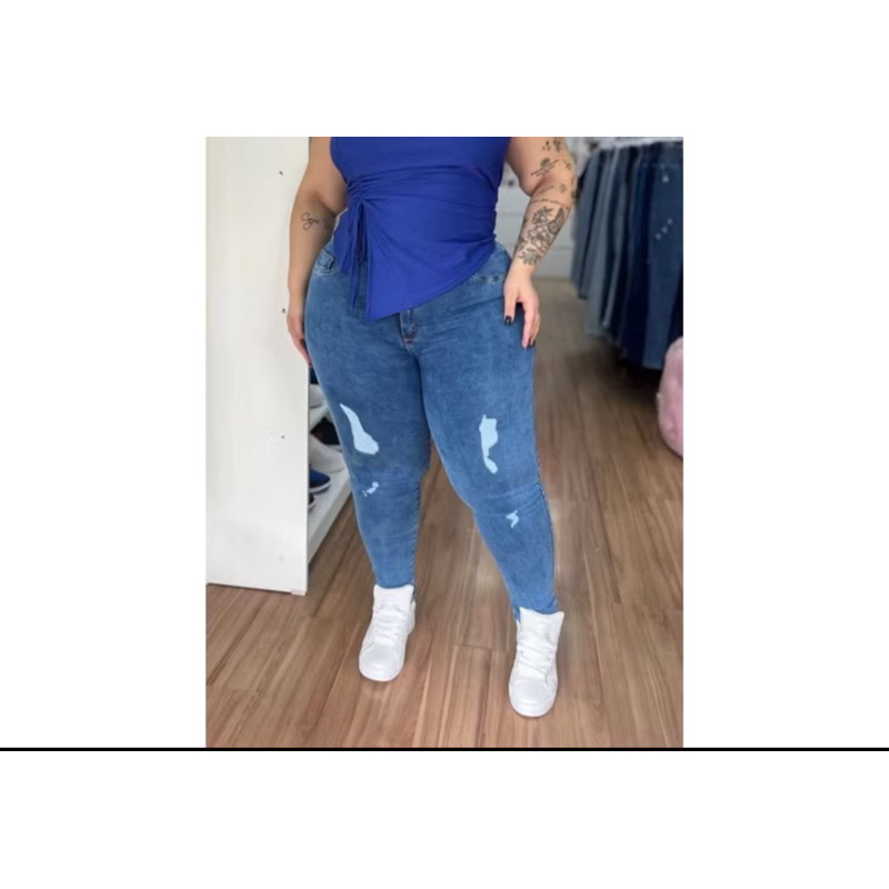Calça Jeans Plus Size Feminina Com Lycra Elastano Destroyed Rasgadinha