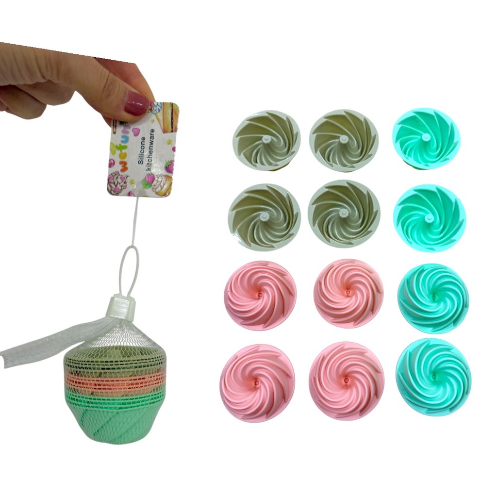 Kit 12 Formas De Silicone P/ Cupcake Pudim Mini Bolo Espiral