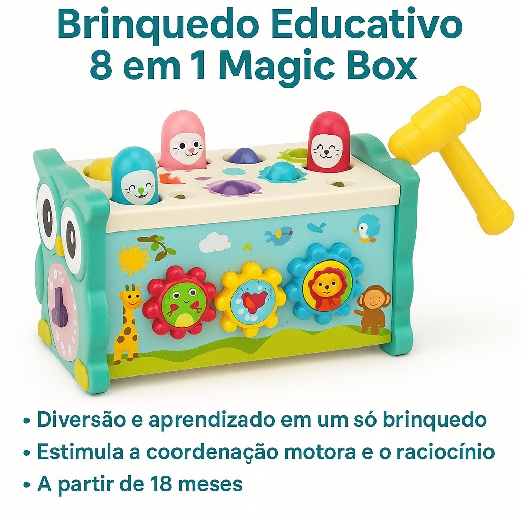 Brinquedo Educativo 8 em 1 Magic Box Martelo Infantil Divertido Menino Menina Montessori