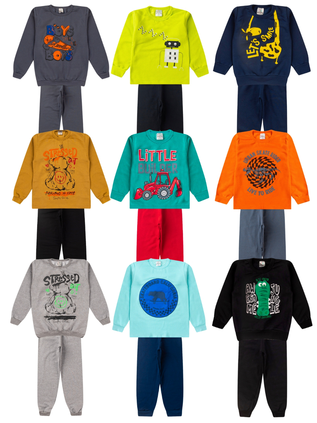 Kit 4 Peças Conjunto Moletom Infantil Menino 1 ao 14 Masculino Outono Inverno Pronta Entrega