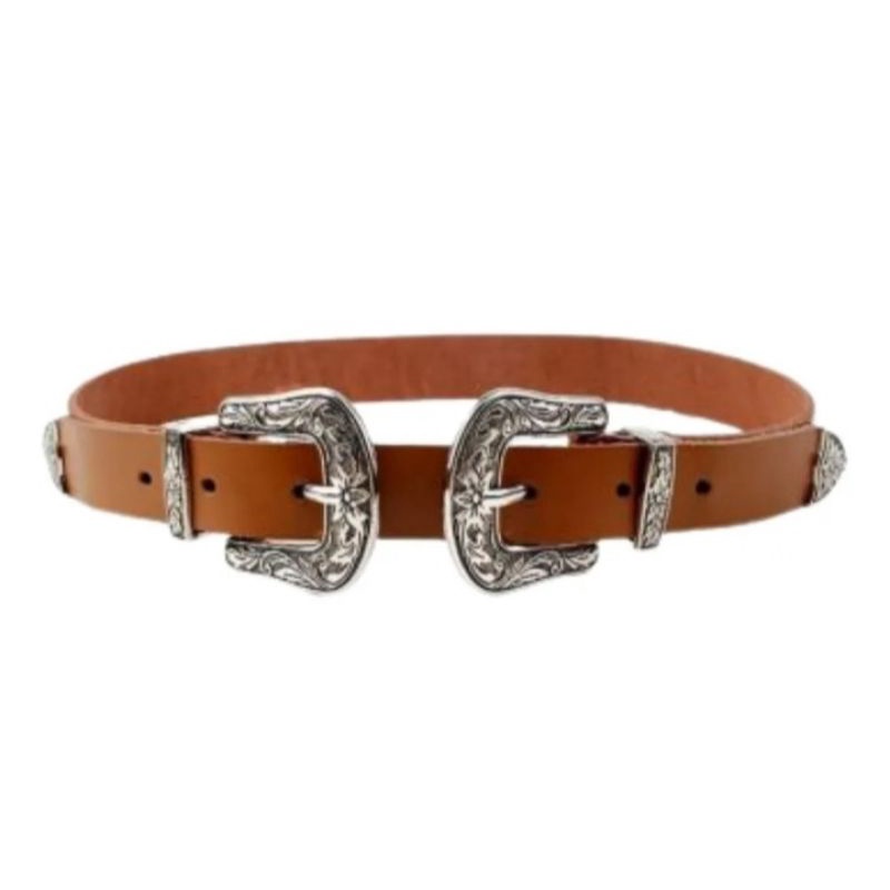 Cinto Feminino Country Couro 2 Fivela Dupla Plus Size Xgg