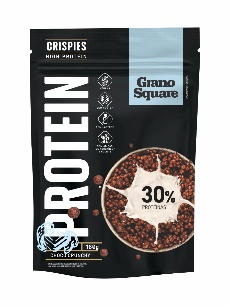 Crispies Protein Vegano Choco Crunchy 180gr, S/ Gluten e S/Açucar, Proteina Plant Based Grano Square