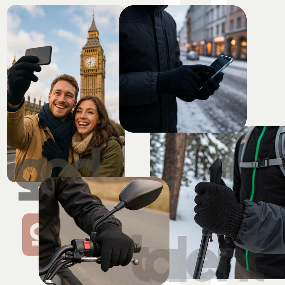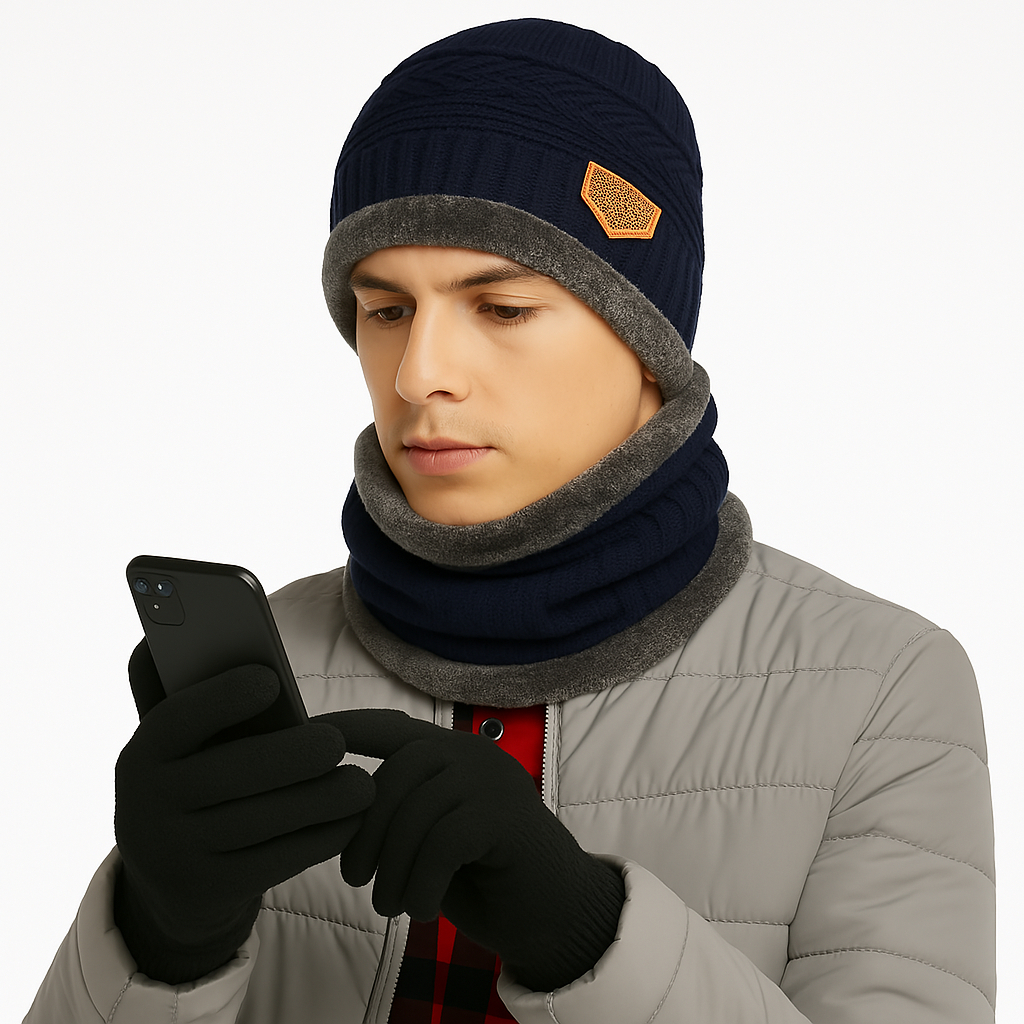 Kit De Frio Luva Touch Touca e Protetor De Pescoço Forrada Cachecol Luvas e Gorro Termico