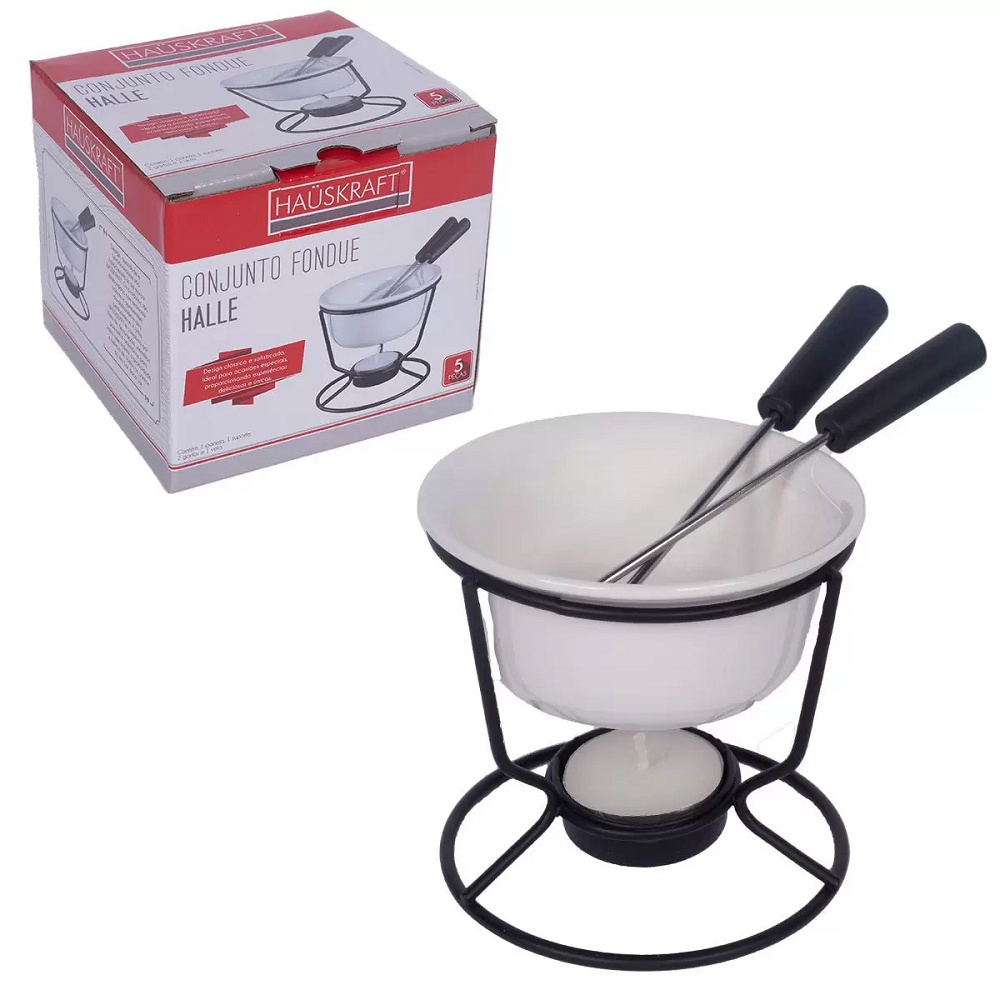 Conjunto Fondue Halle 5 Peças Cerâmica Antiaderente Redondo Hauskraft