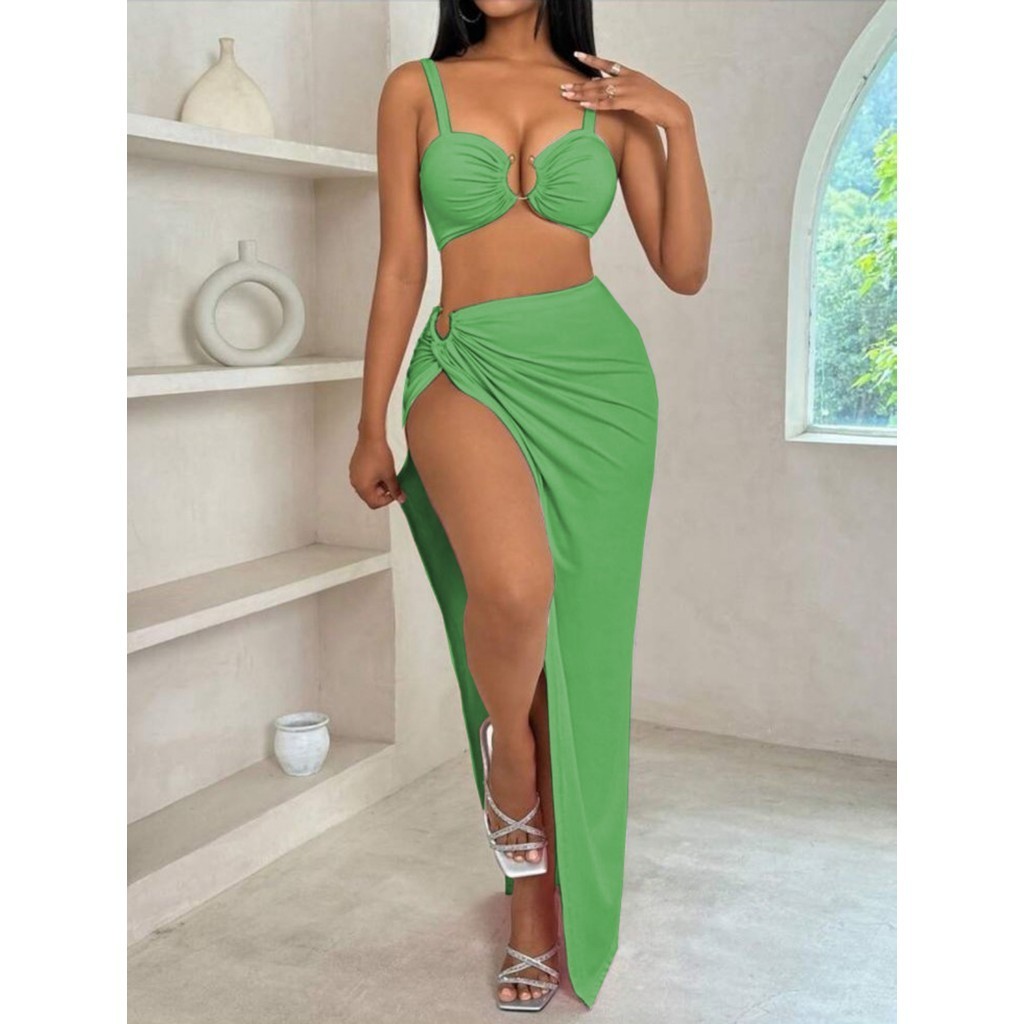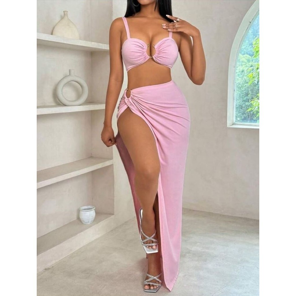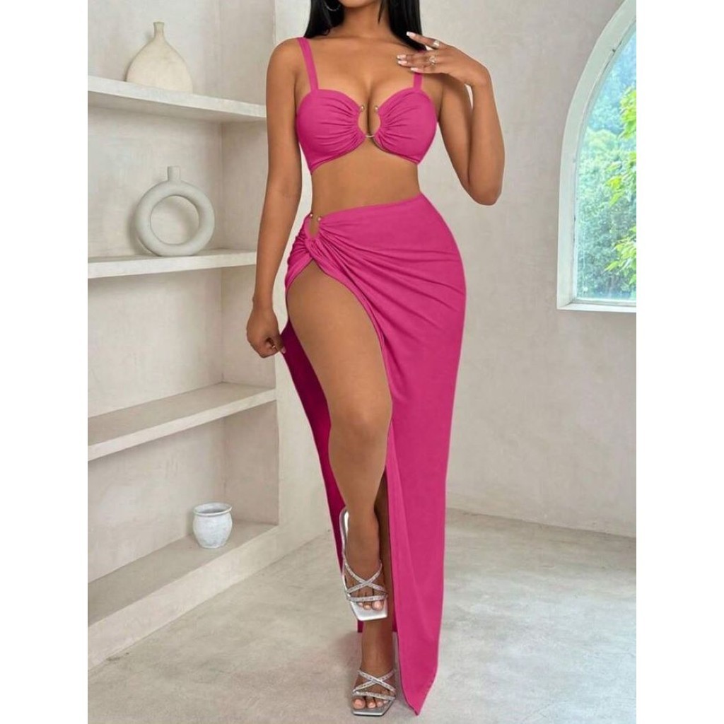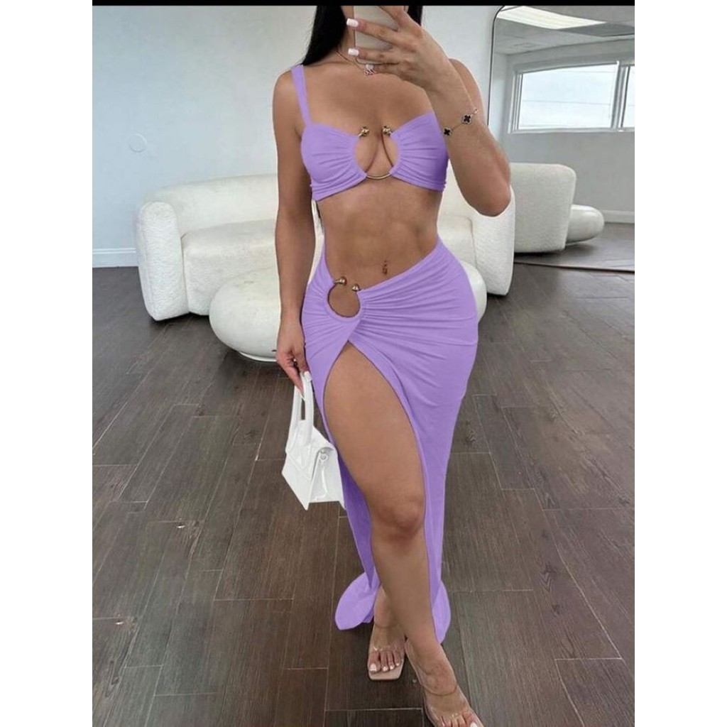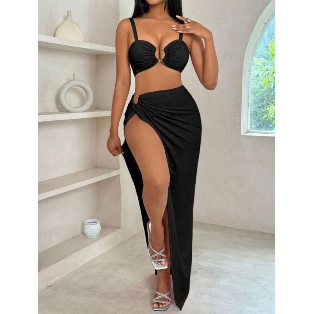 Conjunto verão cropped alcinha decotado + saia midy com argola casual festas e balada