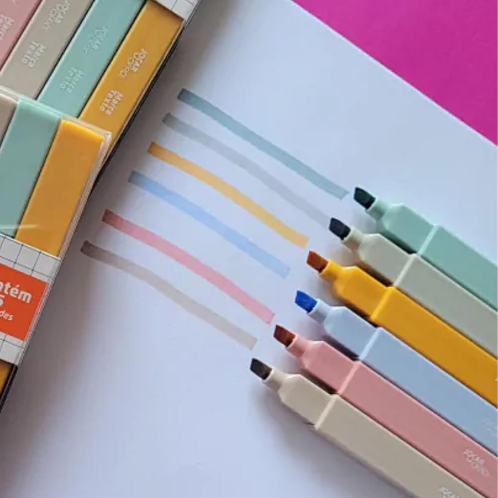Marca Texto Quadrado Kit com 6 Cores Pastel Vintage | JOCAR OFFICE