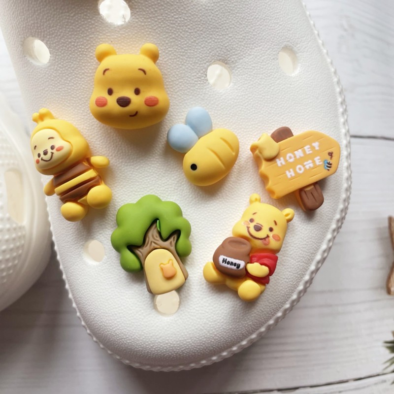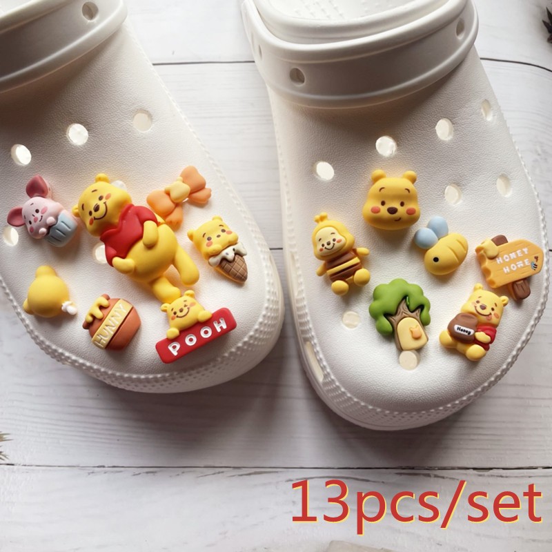 13 Unidades/Conjunto-13 Amuleto De Sapatos Com Botões De Ursinho De Pelúcia Amarelo
