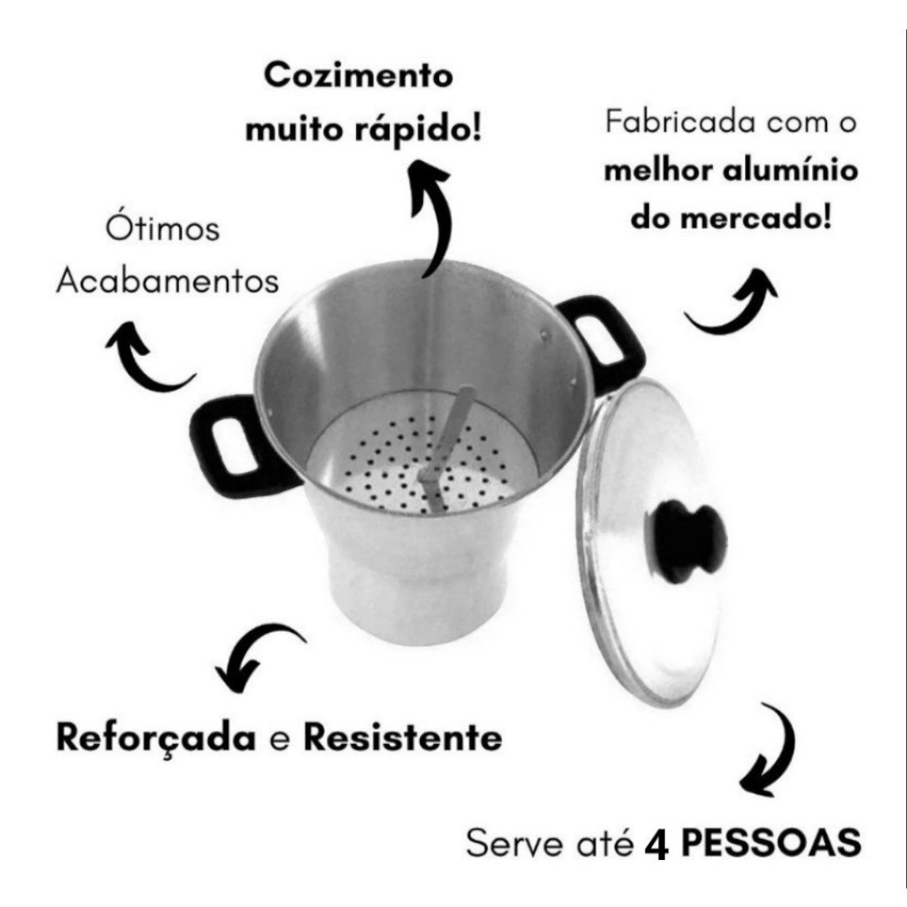 Cuscuzeira De Alumínio N°16 Cuscuzeiro Medio Panela Faz Cuscuz Delicioso Feita Em Alumínio Polido