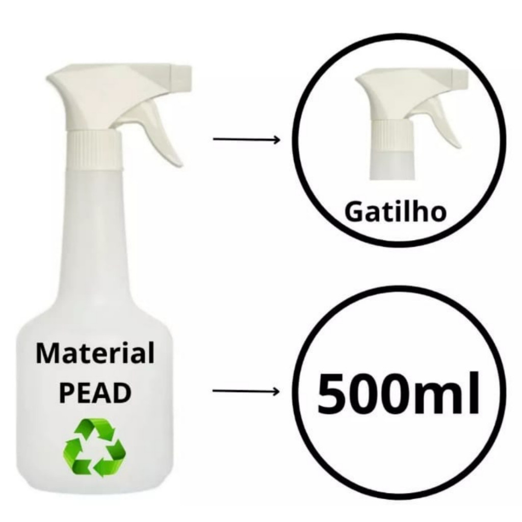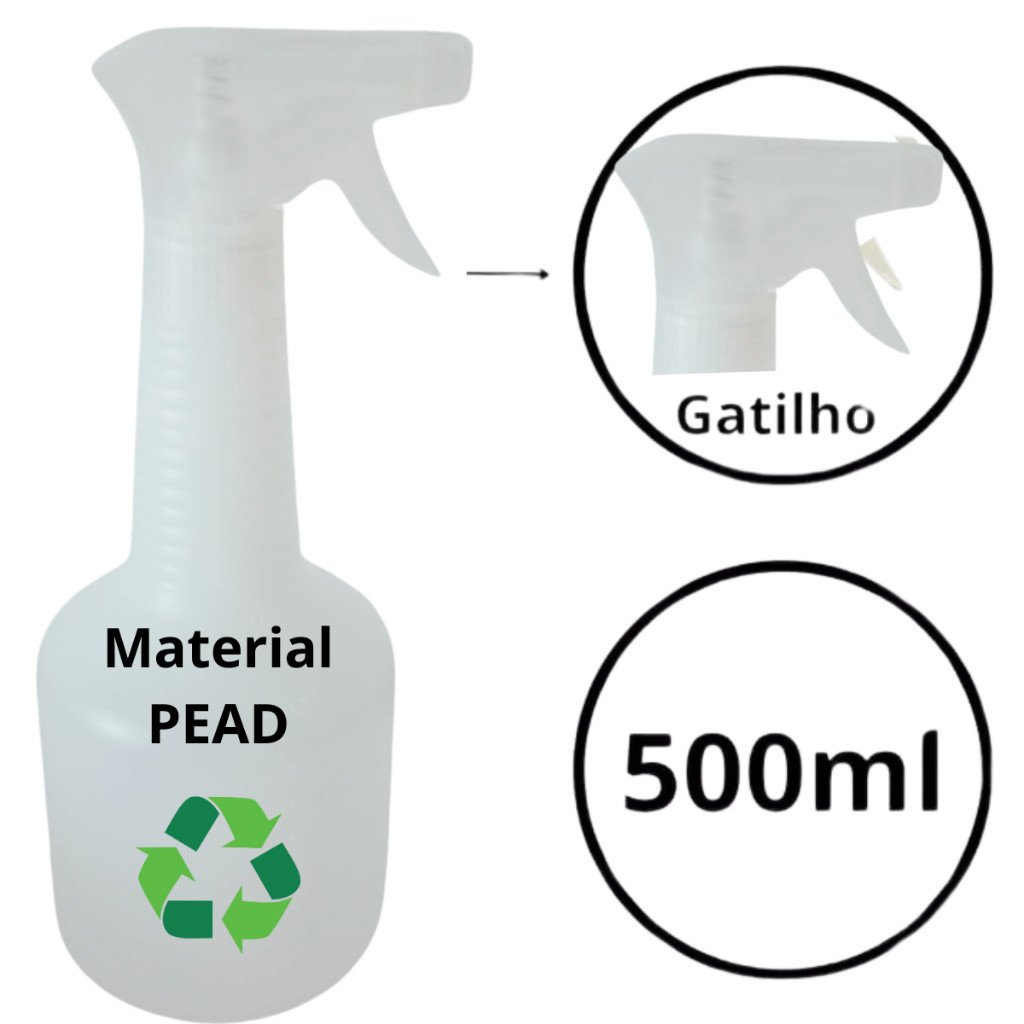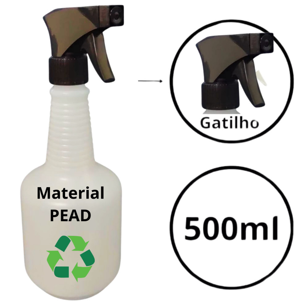 Kit 5 Borrifadores Pulverizadores Com Gatilho Spray Para Todo Tipo de Líquido 500ml