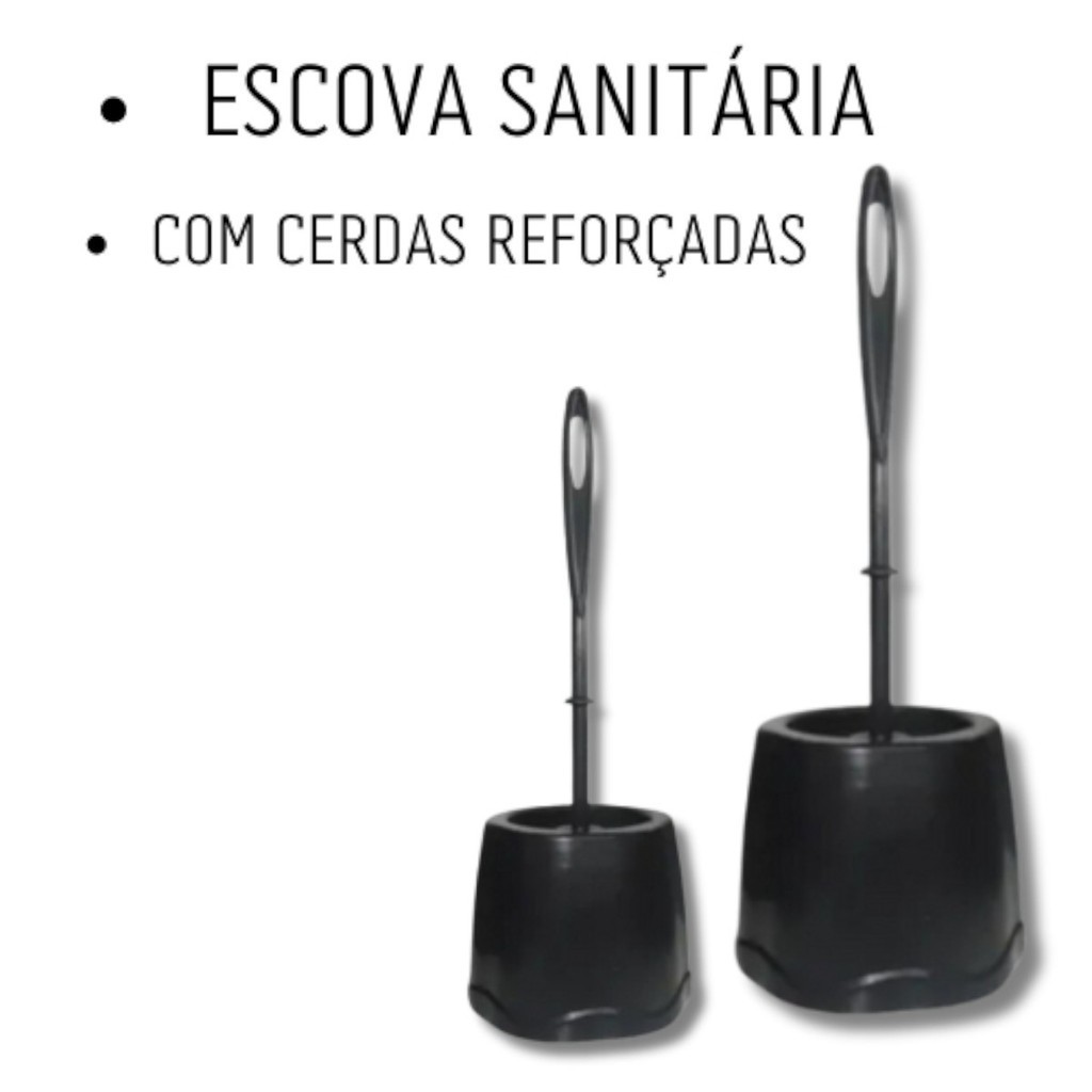 Lixeira Redonda Preta com Pedal 07 Litros + Escova Sanitária Preta Casa Utilidades Banheiro limpeza
