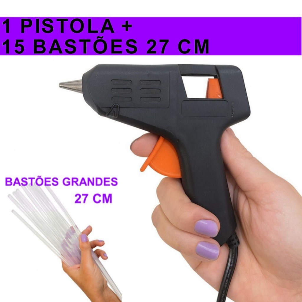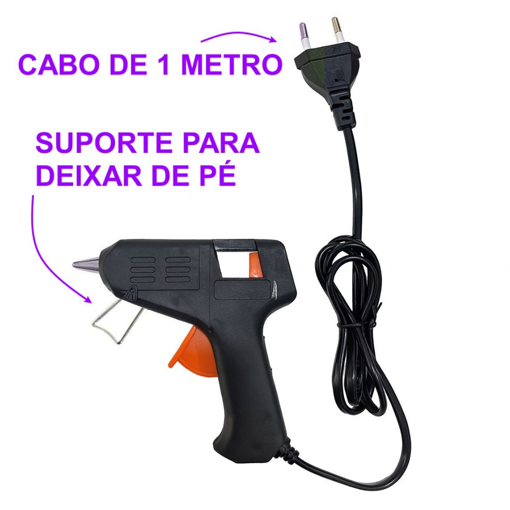 Kit Pistola Cola Quente Pequena Bivolt 10W + 7, 10 ou 15 Bastões 7mm Quantidade Aplicador Artesanato