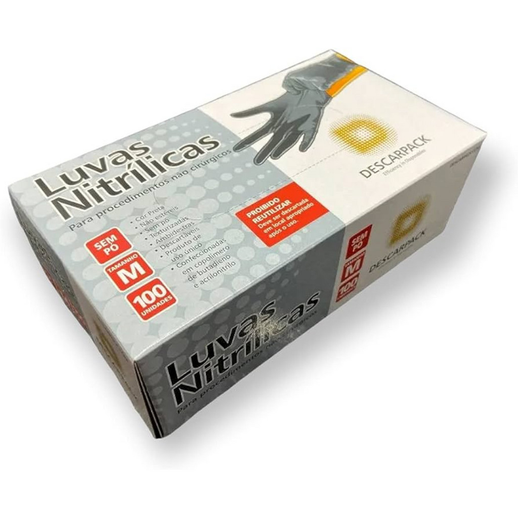 Luva Nitrílica Preta Descarpack Com 100 Uni