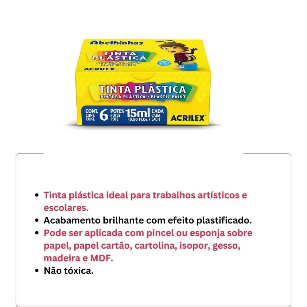 Tinta Acrilex Plástica 15ml - Kit 6 Cores Multi-superfície