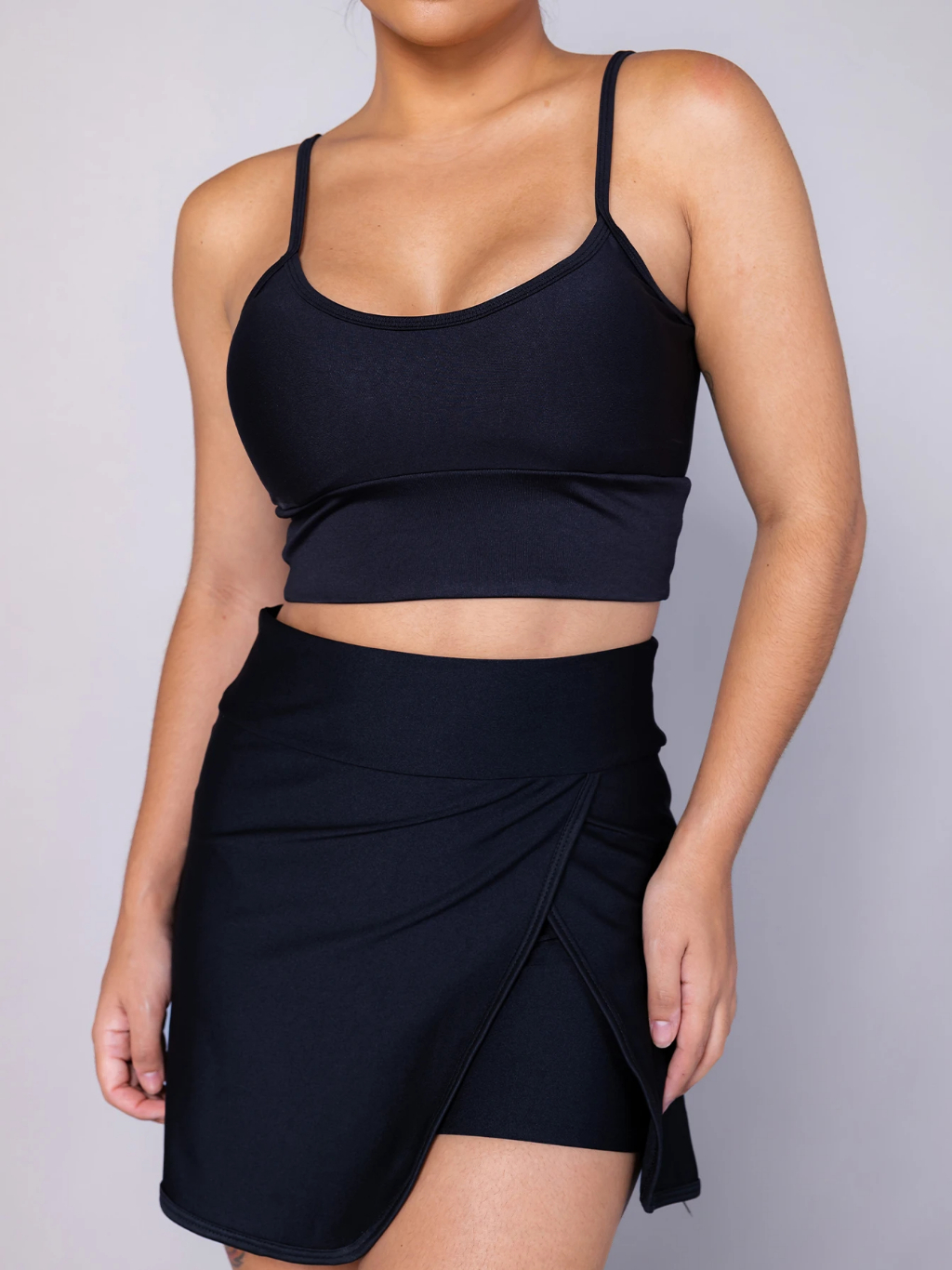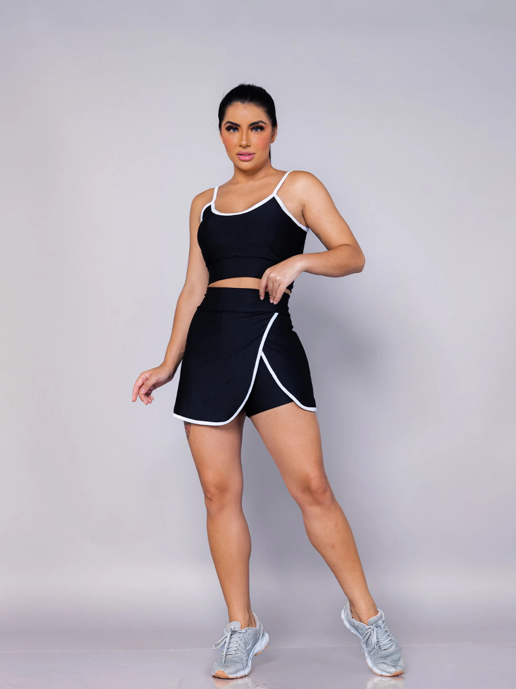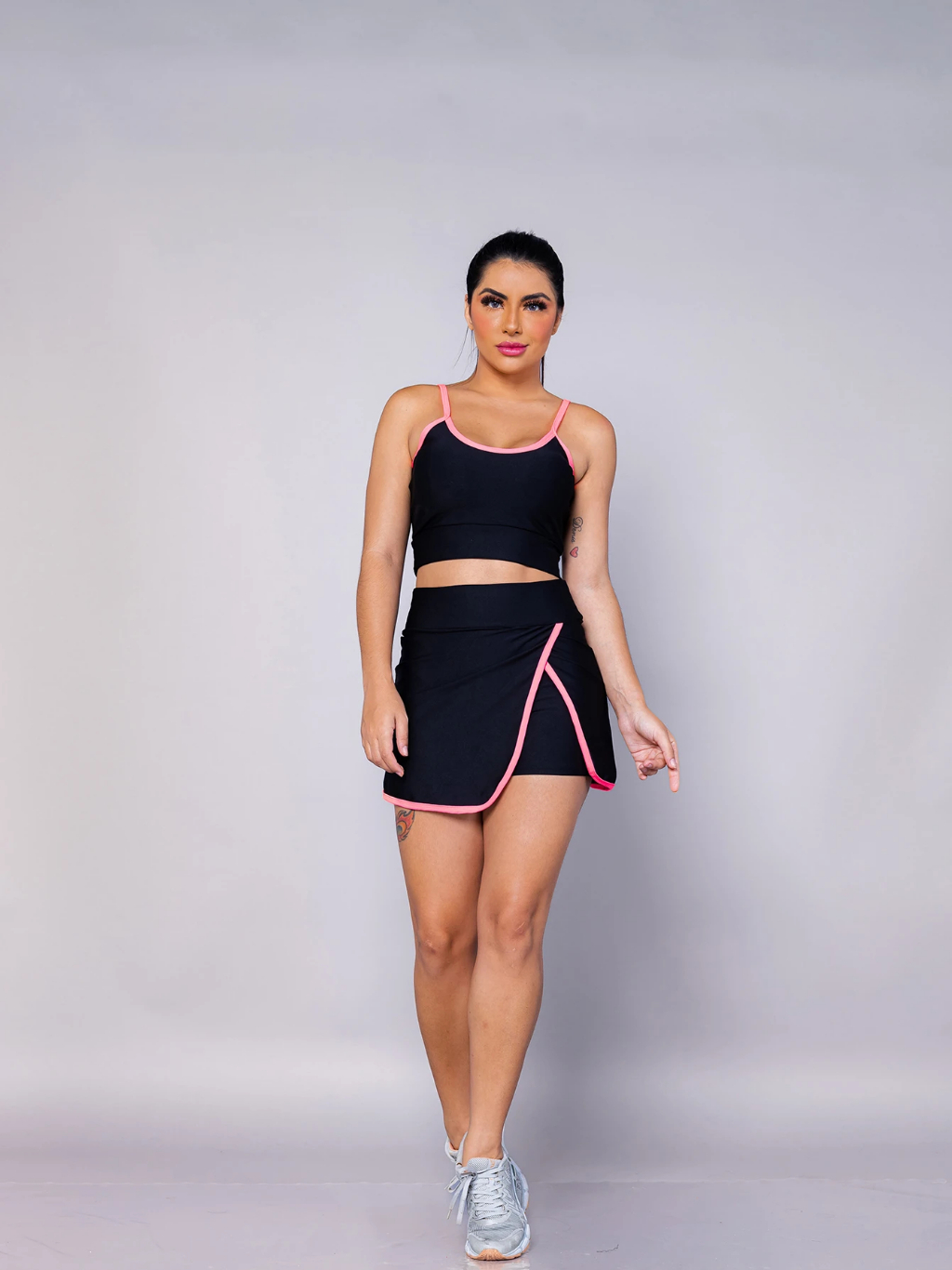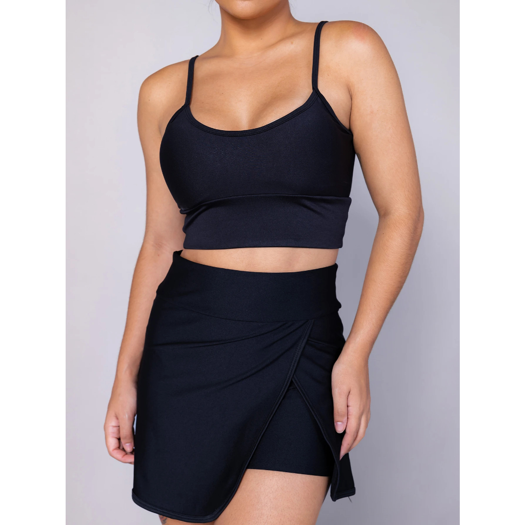 conjunto feminino Fitness Academia esporte. shorts saia + top com bojo bem no corpo