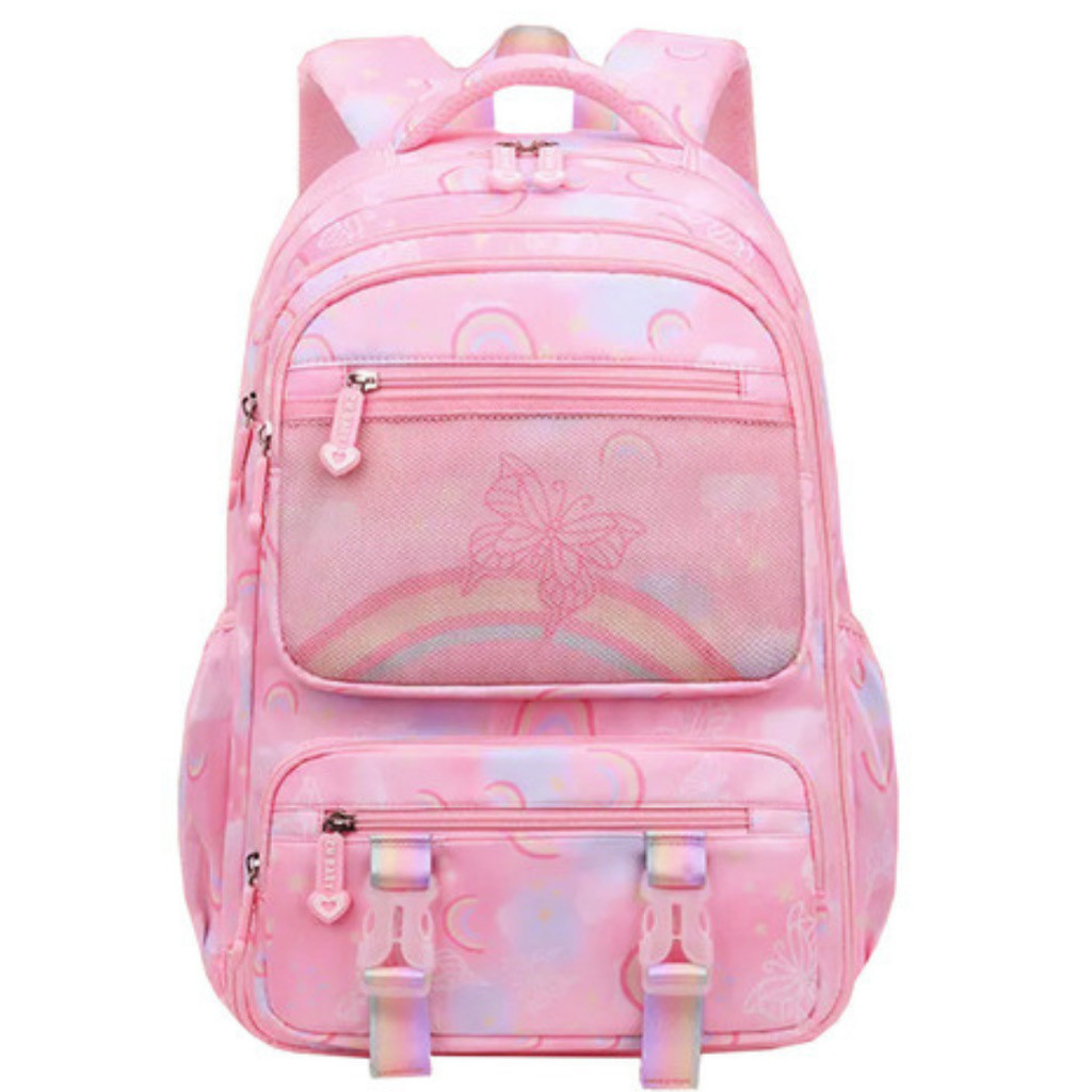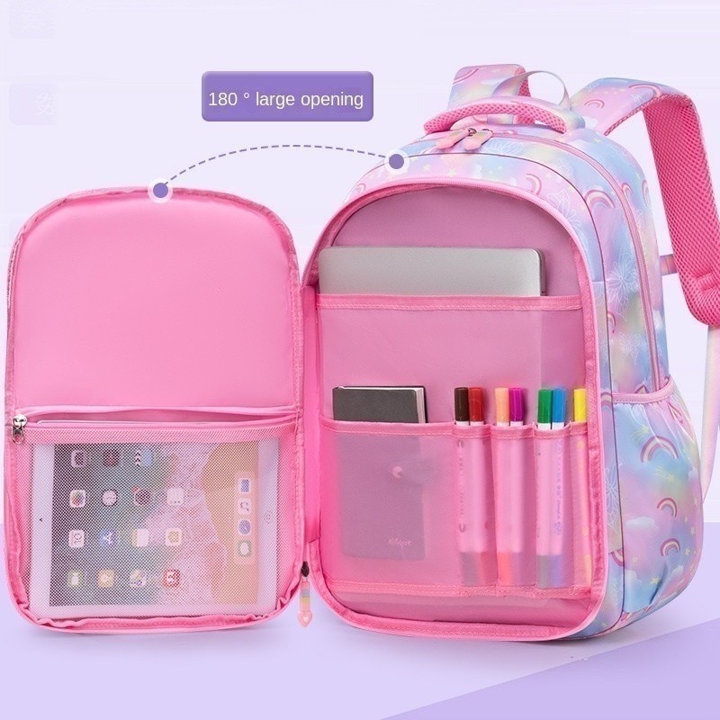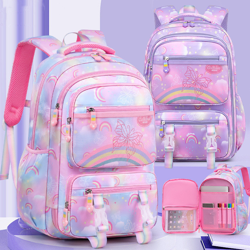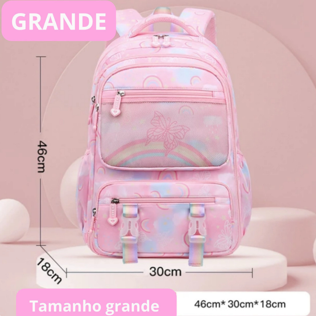 Mochila escolar para meninas estilo arco-íris