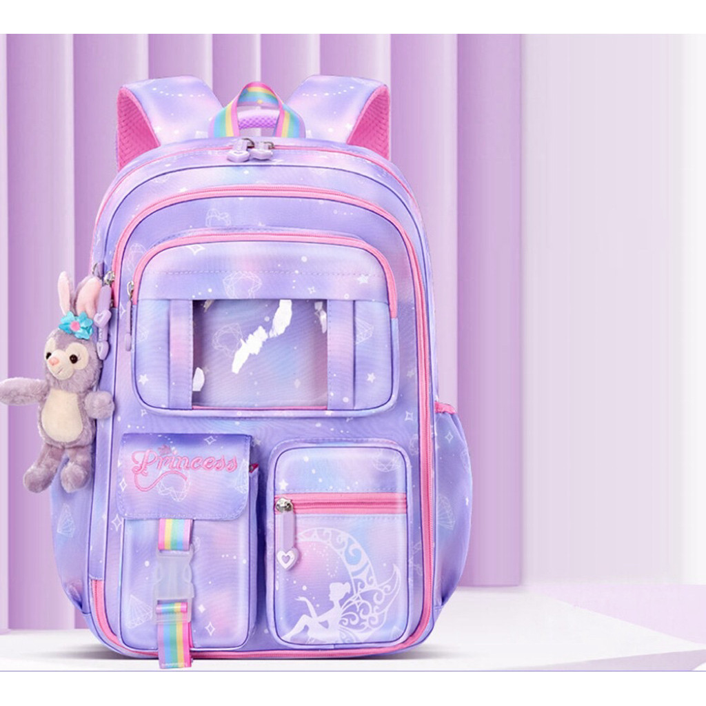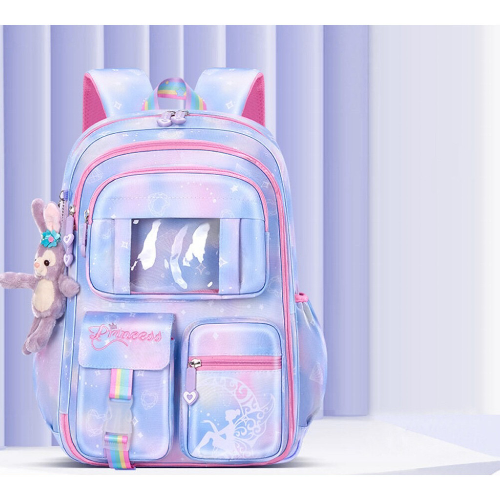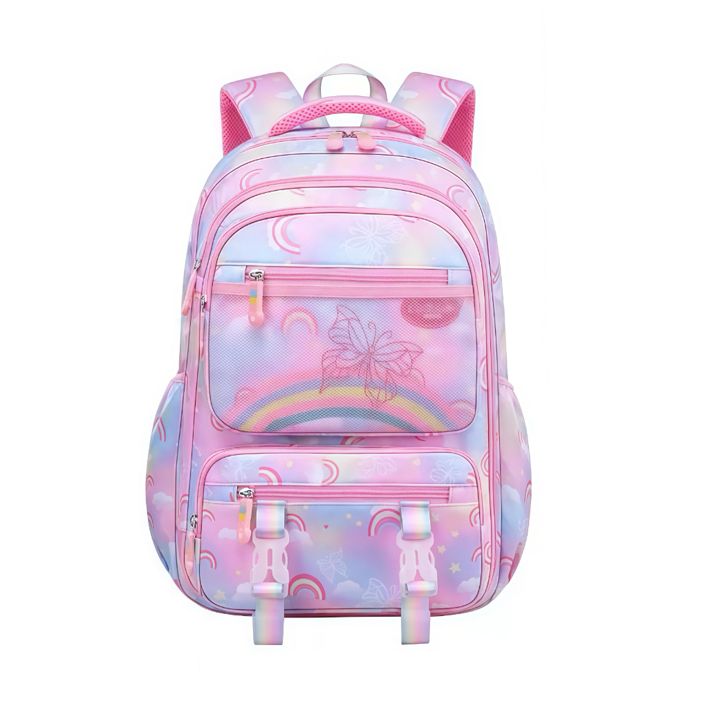 Mochila escolar para meninas estilo arco-íris