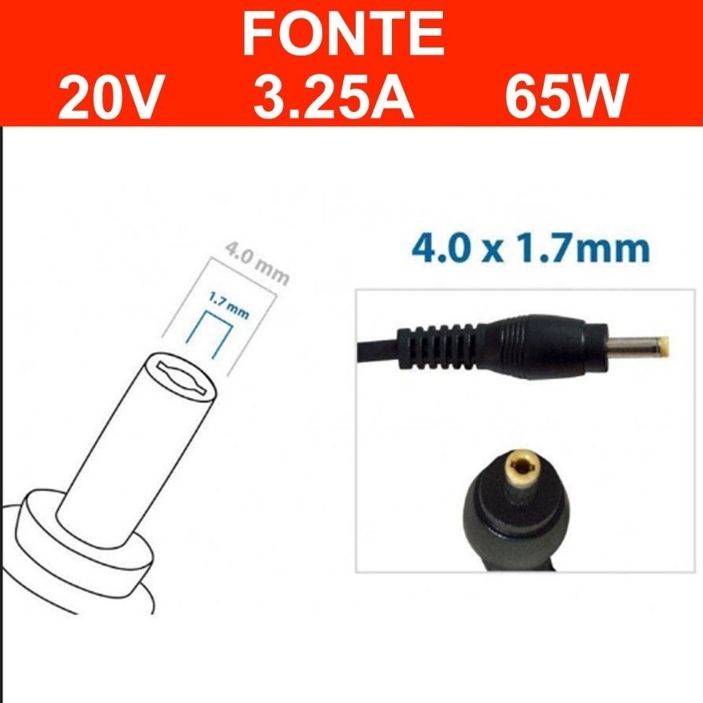 Fonte AAA006 20V/3.25A/65W Compativel com Lenovo Ideapad 310 - 320 - S145 - yoga 520 YIHAN