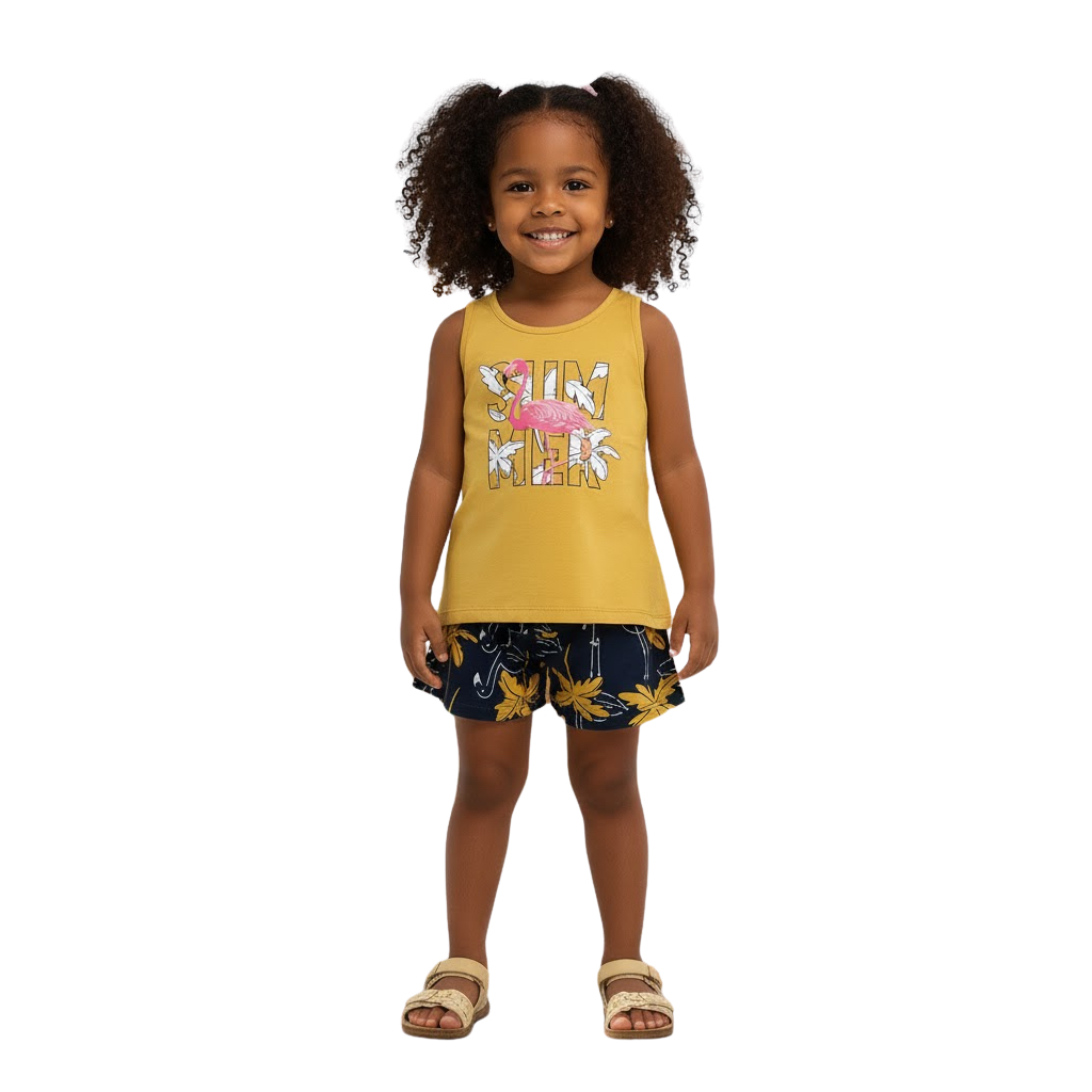 Conjunto Camiseta Regata Short Infantil Menina Estampa Kyly