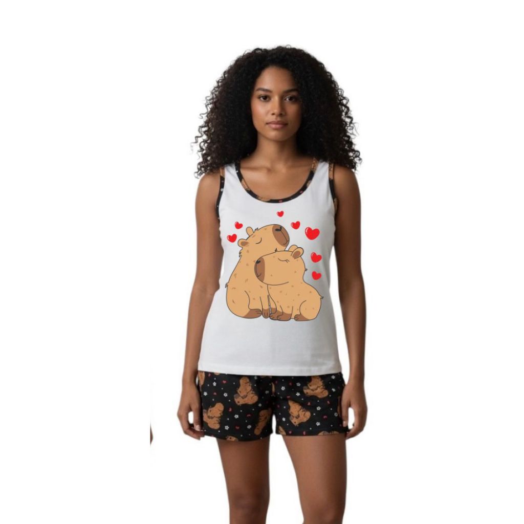 Kit 1 Mãe e 2 Filhas Baby doll estampado regata tal mãe tal filha capivara verão malha short doll camiseta personagens