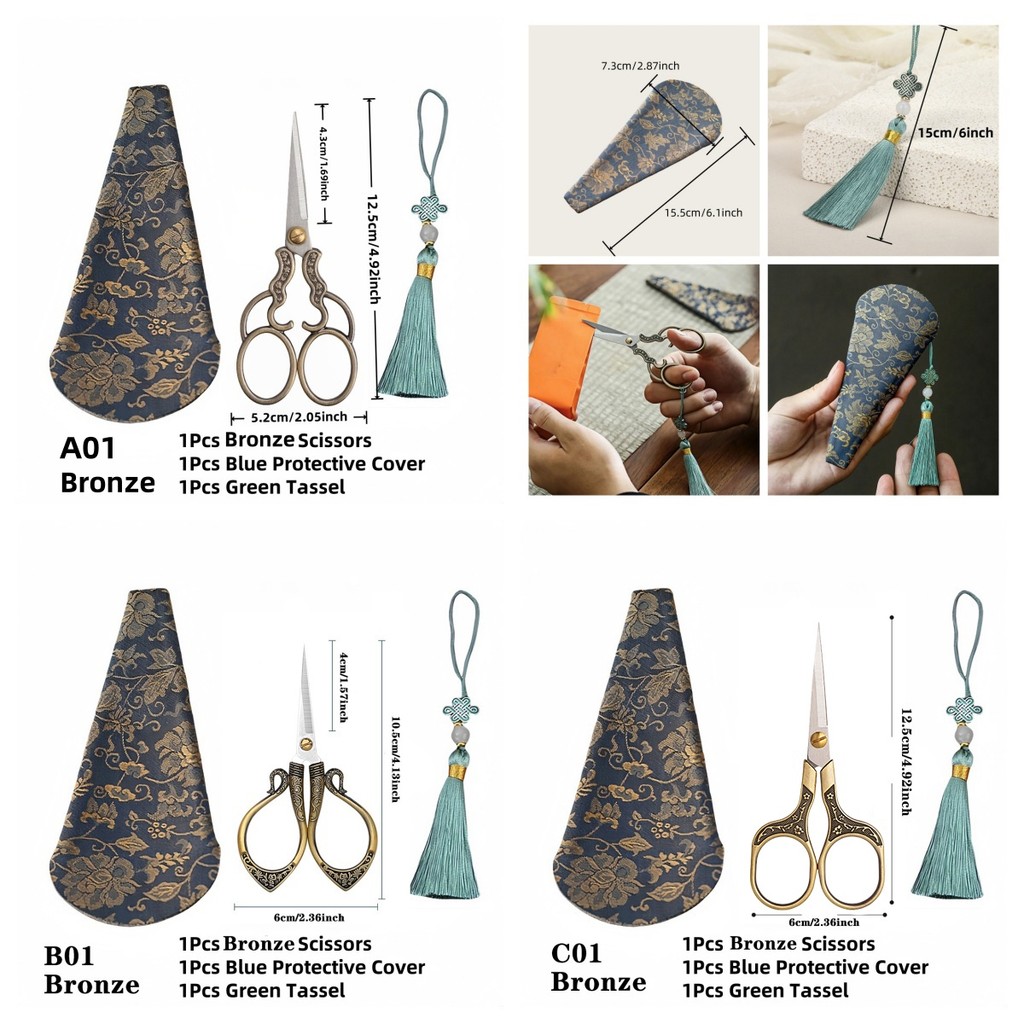 Costura Tesoura Vintage Conjunto Escolar Bordada Artesanal DIY Com Mangas E Borlas , Corte Fácil De Tecido De Serapilhei