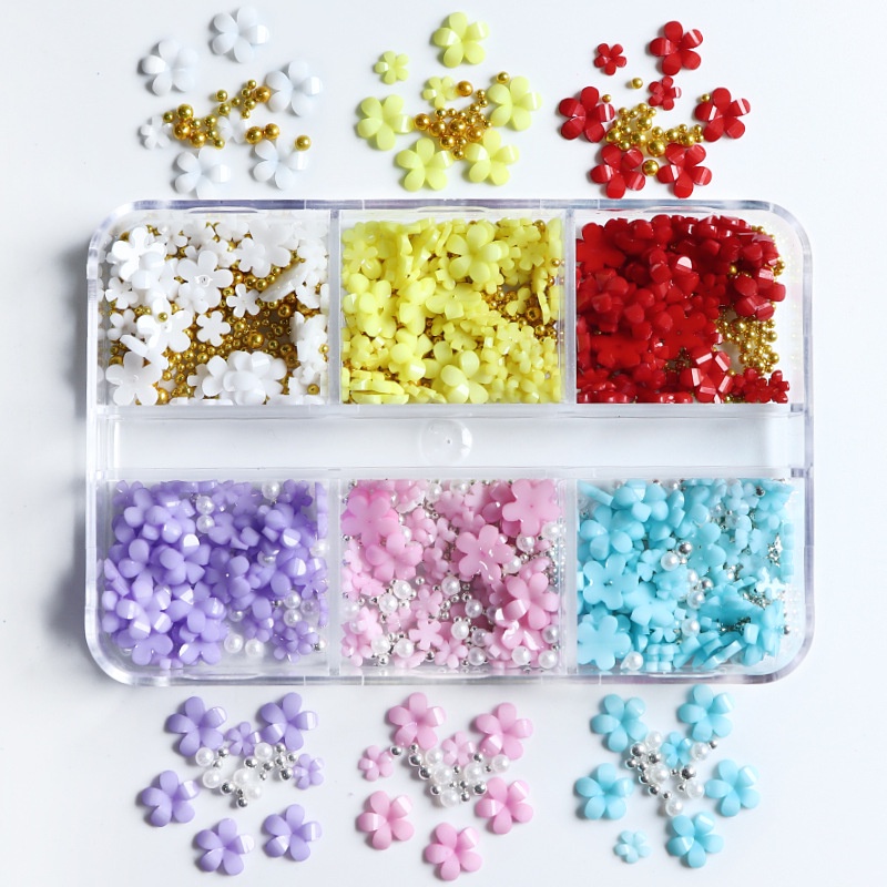 3D Flores Coloridas Encantos De Unha Branco Rosa Azul Roxo Vermelho Preto Acrílicas