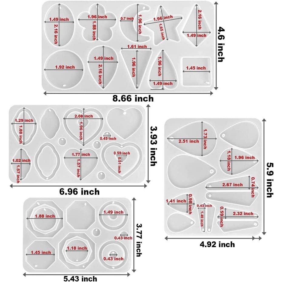 Brincos Grandes De Resina Molde Com Furo , Oval/Teardrop/Coração/Estrela/Moon Pingente Chaveiro De Tarraxa Moldes De Silicone Para Fundição , Fabricação De Joias