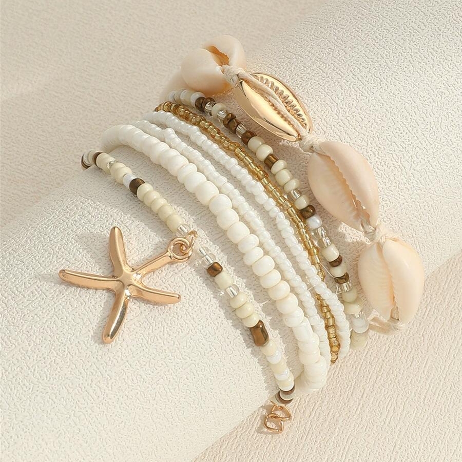 Moda Boho Concha Estrela Do Mar Frisado Tornozeleira Praia Jóias Feminino Acessórios De Presente De Feriado