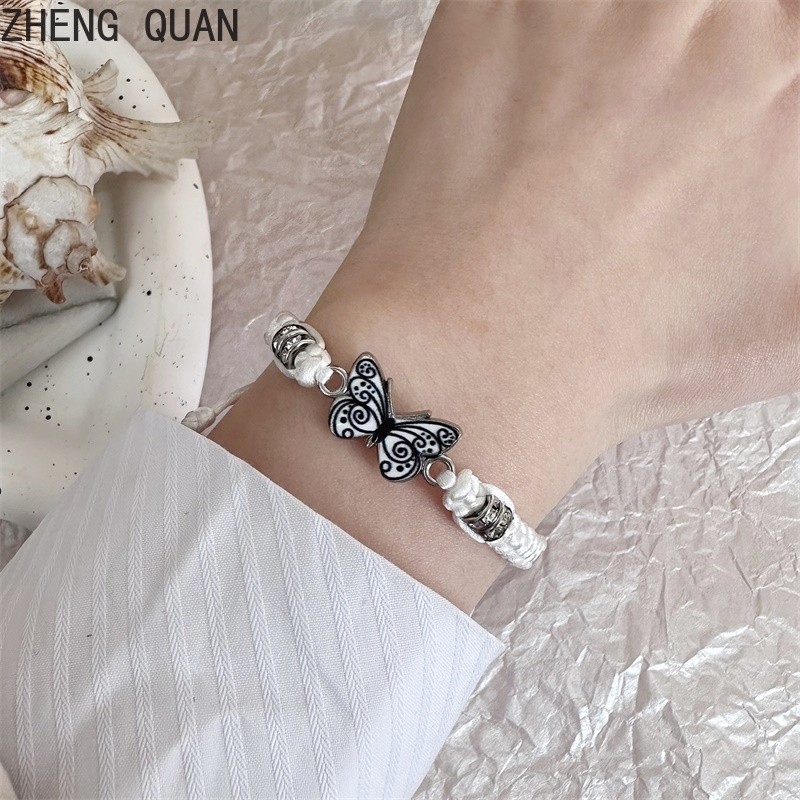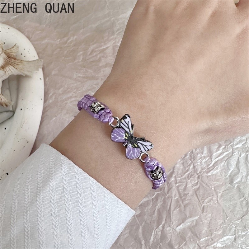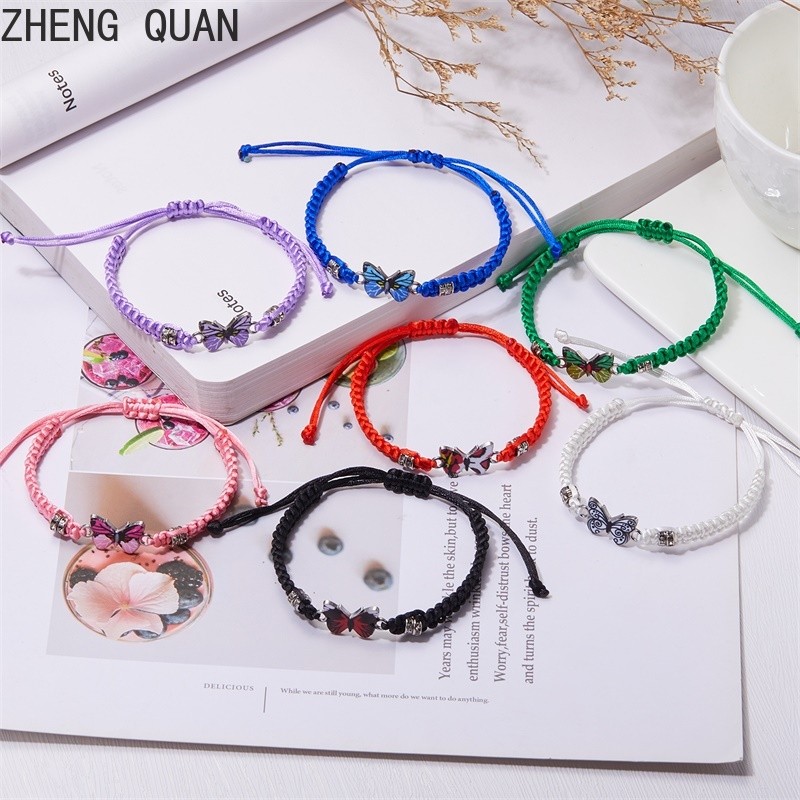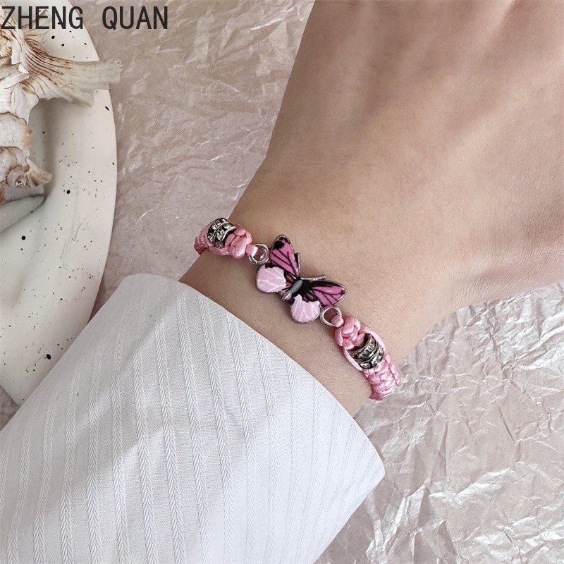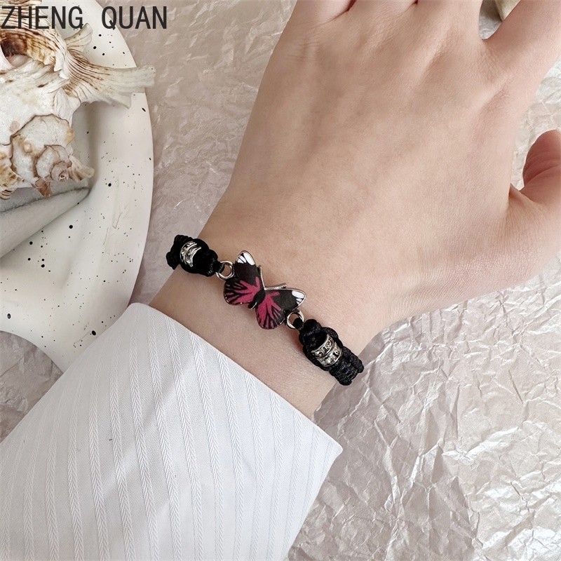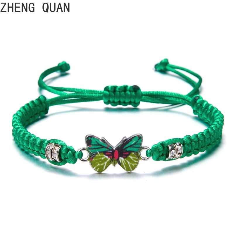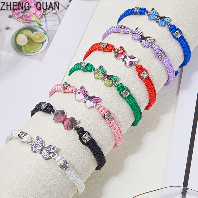 Pulseira De Moda Borboleta Feita À Mão Casal Ajustável De Corda De Rhinestone Para Mulheres E Homens Jóias De Amizade