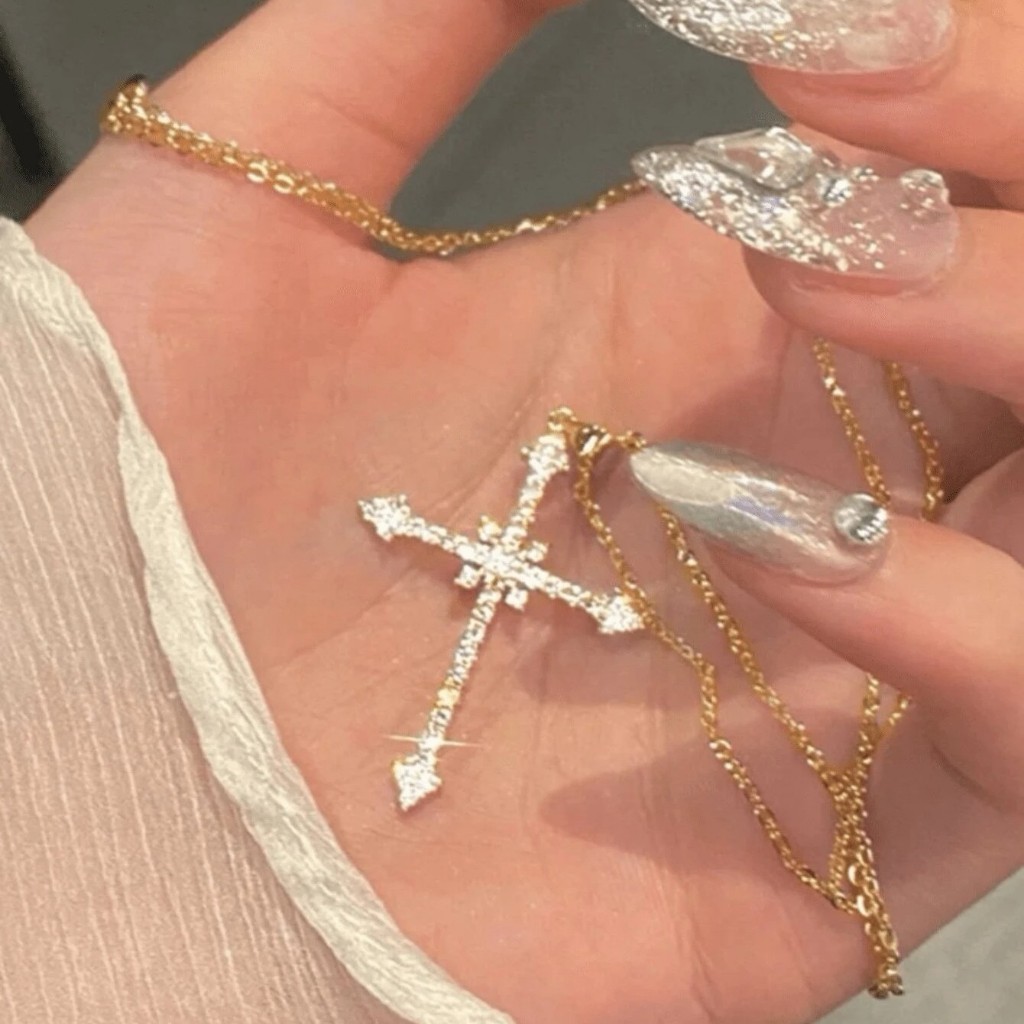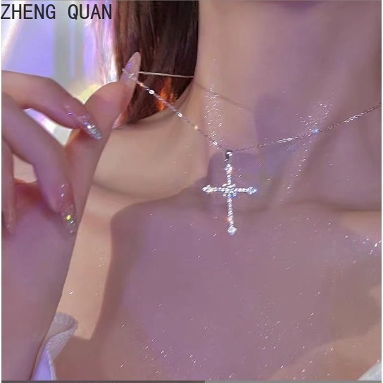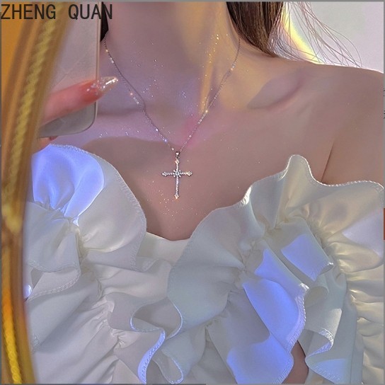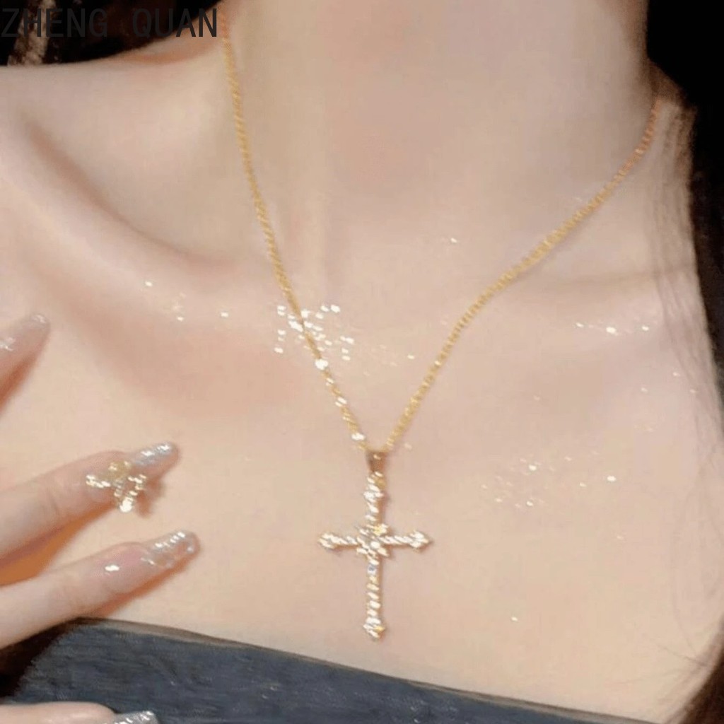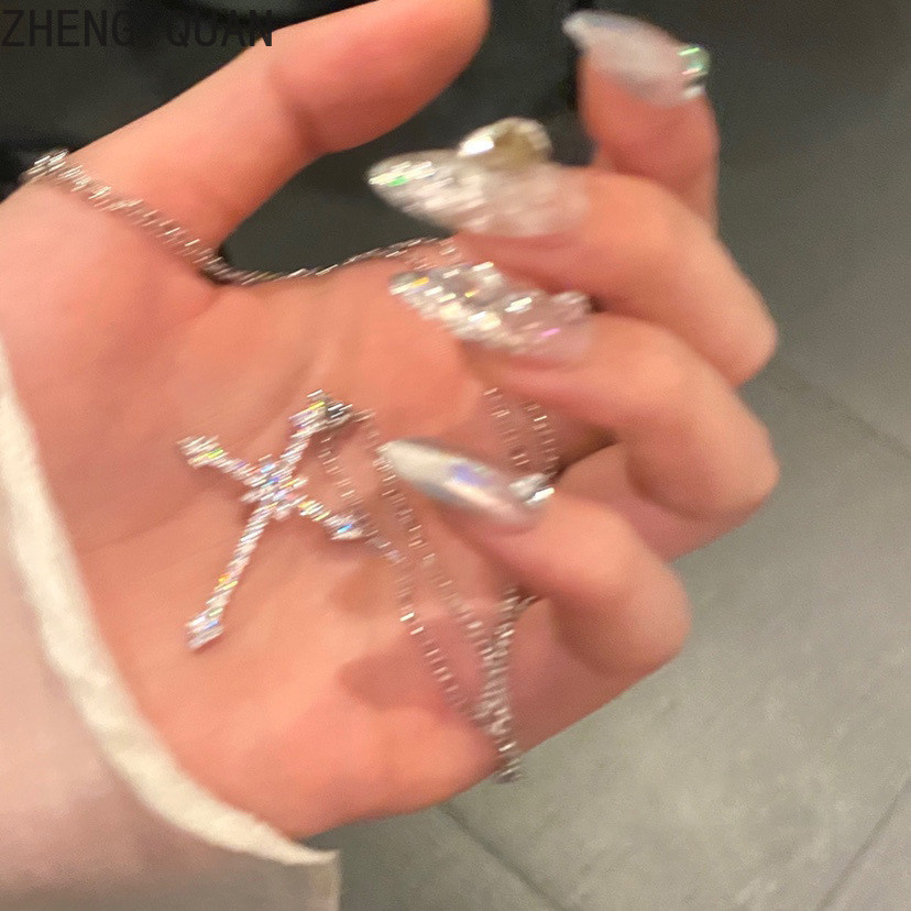 Moda Brilhante Estrelado Cruz Colares Strass Criss Pingente Colar Para Mulheres Jóias Vintage Presentes Legal Meninas