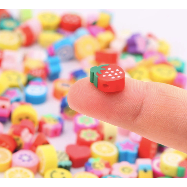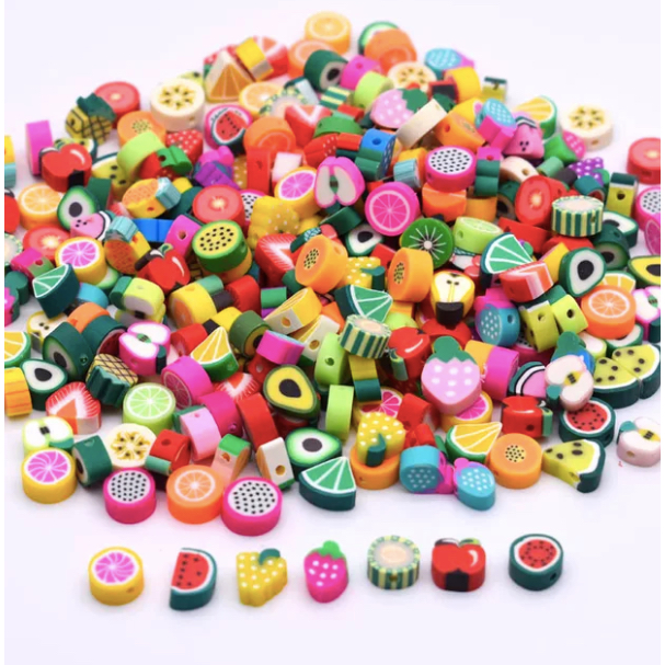 Até 100 Peças Entremeio Miçanga Infantil Frutinha Fruta Emborrachado PVC 10MM Fimo