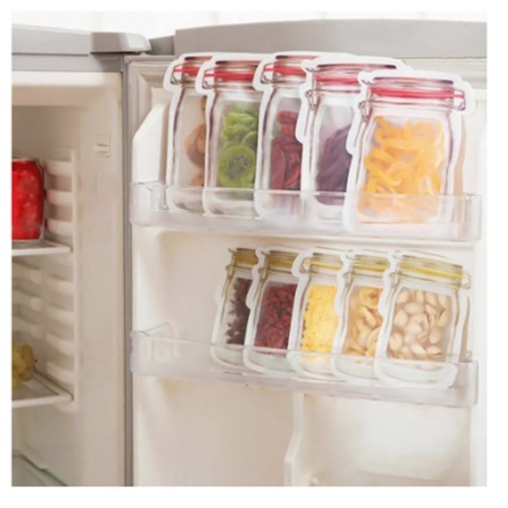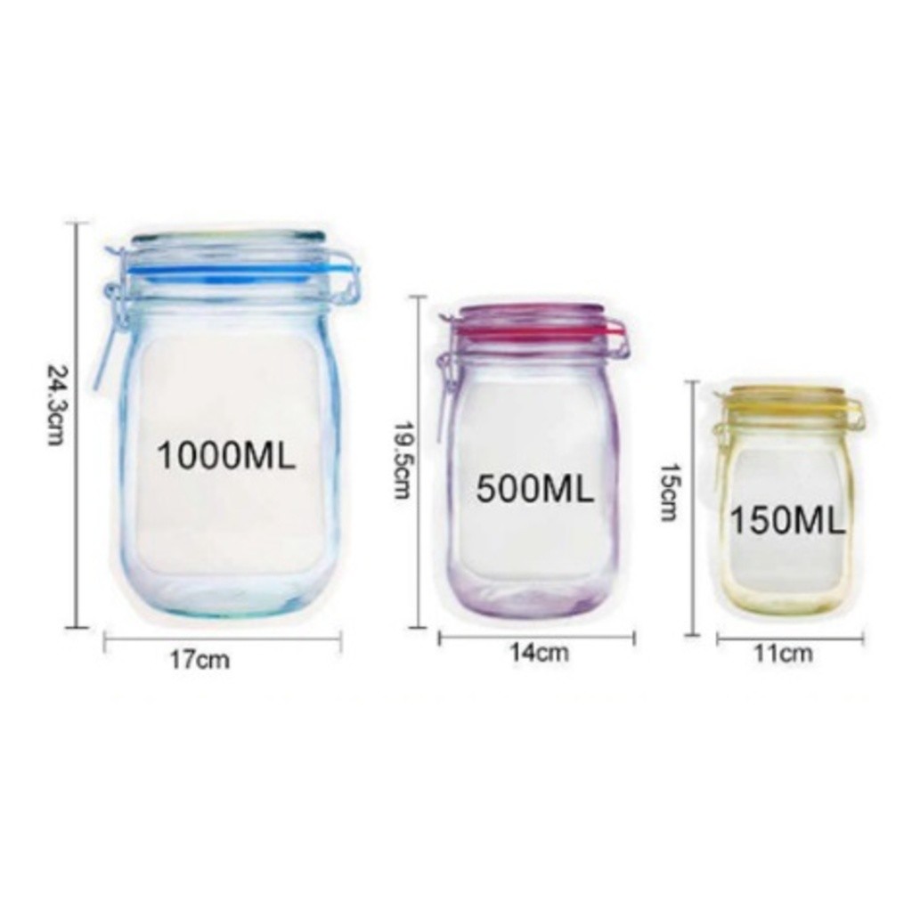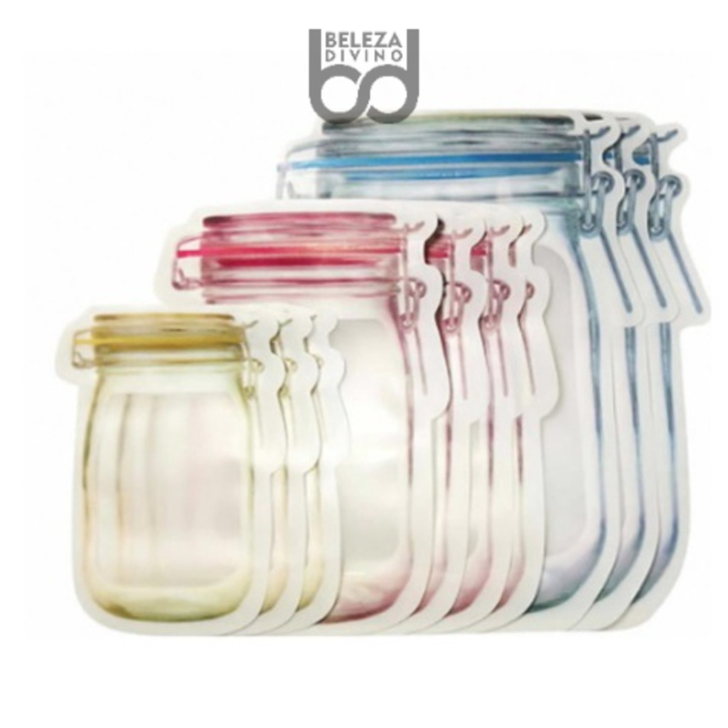 KIT 15 UNIDADES: Sacos Embalagem Zip Lock Reutilizável com Desenho Pote Hermético - 3 Tamanhos