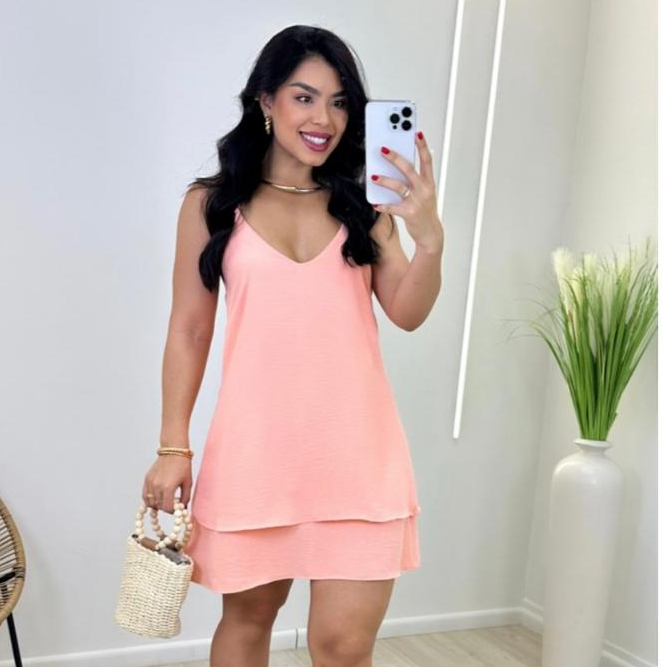 Vestido Femininos no Tecido Duna, Alça Ajustável e Detalhe em Camadas Leve Ocasiões.