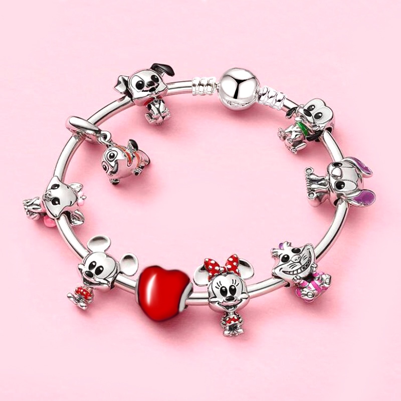 Mickey Minnie Gelang Contas De Ponto Palhaço Prata Cor Bracelete De Encanto Para Mulheres Jóias De Cristal De Esmalte