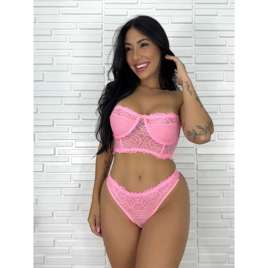 Conjunto Sexy Sem Bojo Com Aro Renda Alça Removível Linha Laura