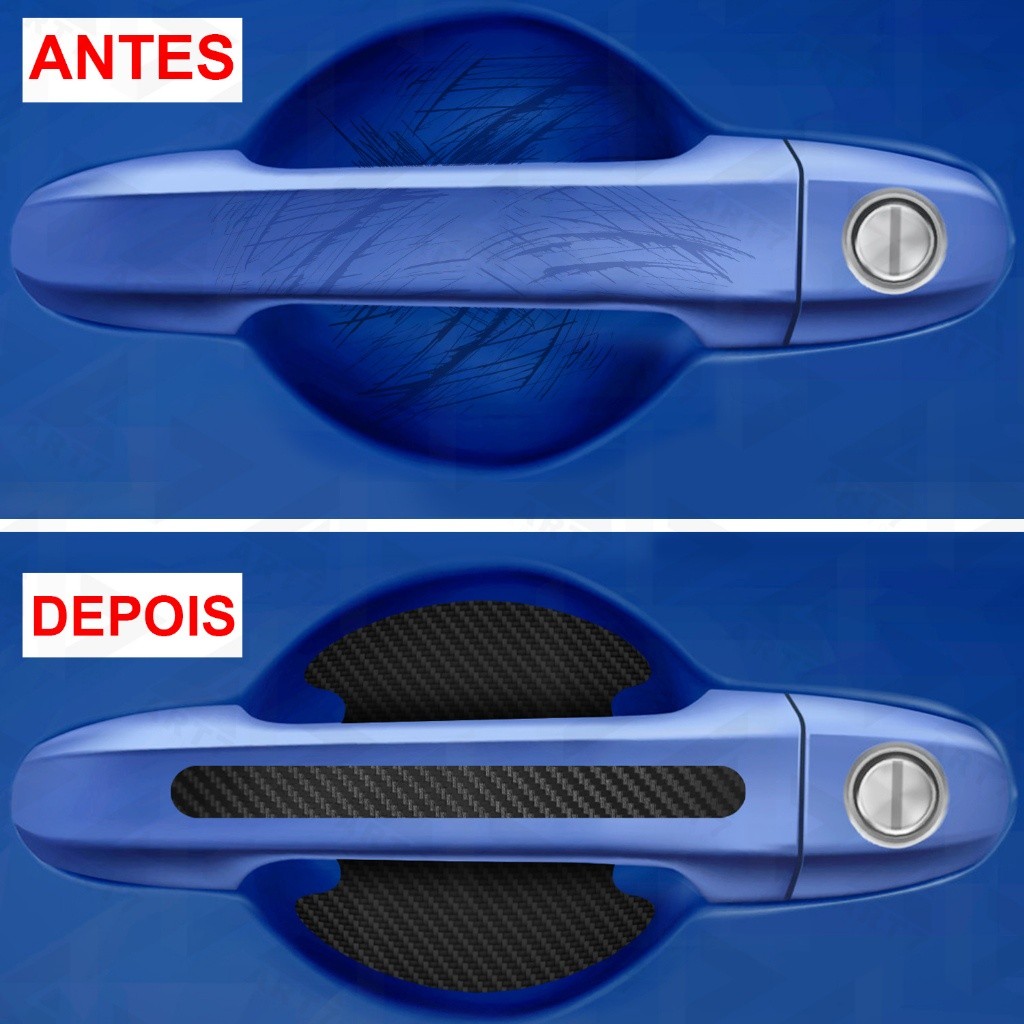 Kit 8 Peças Adesivo Protetor Maçaneta de Porta Fibra de Carbono Carro Anti Arranhões
