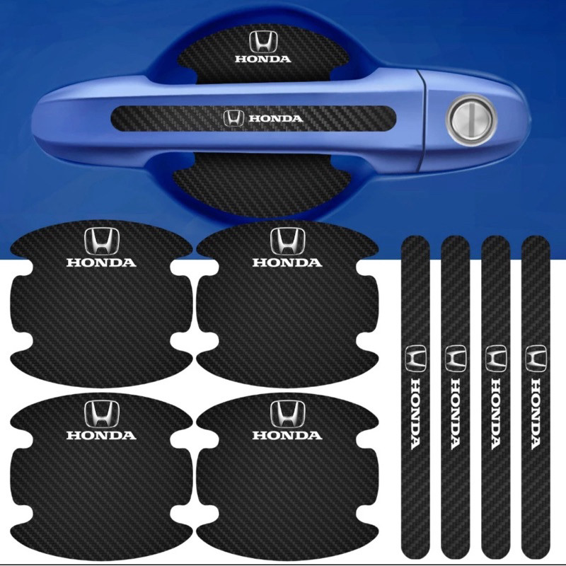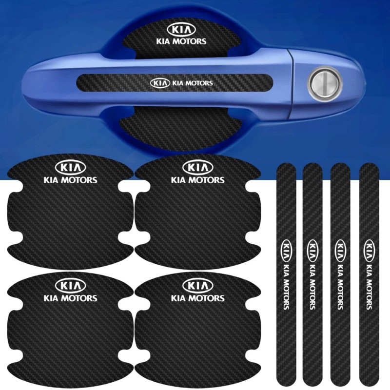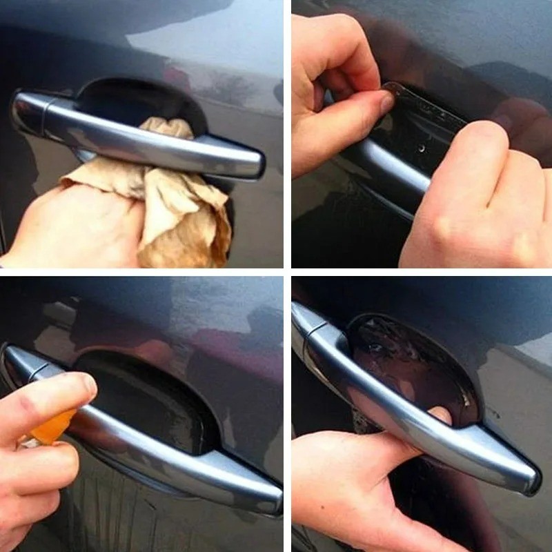 Kit 8 Peças Adesivo Protetor Maçaneta de Porta Efeito Fibra de Carbono Carro Anti Arranhões